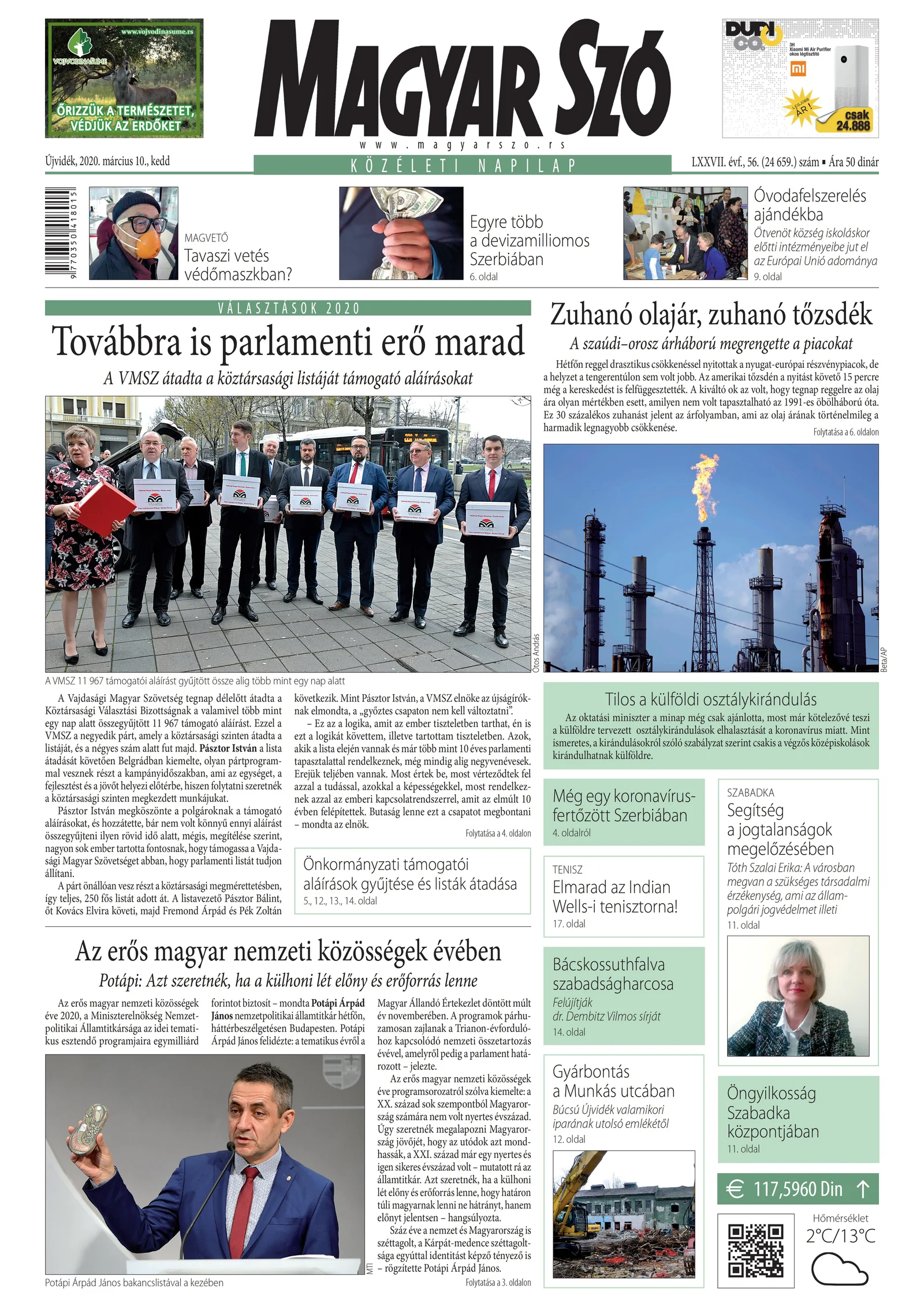 Magyar Szó, 77. évf. 2020. március 10. 56. sz. 1–20. oldal