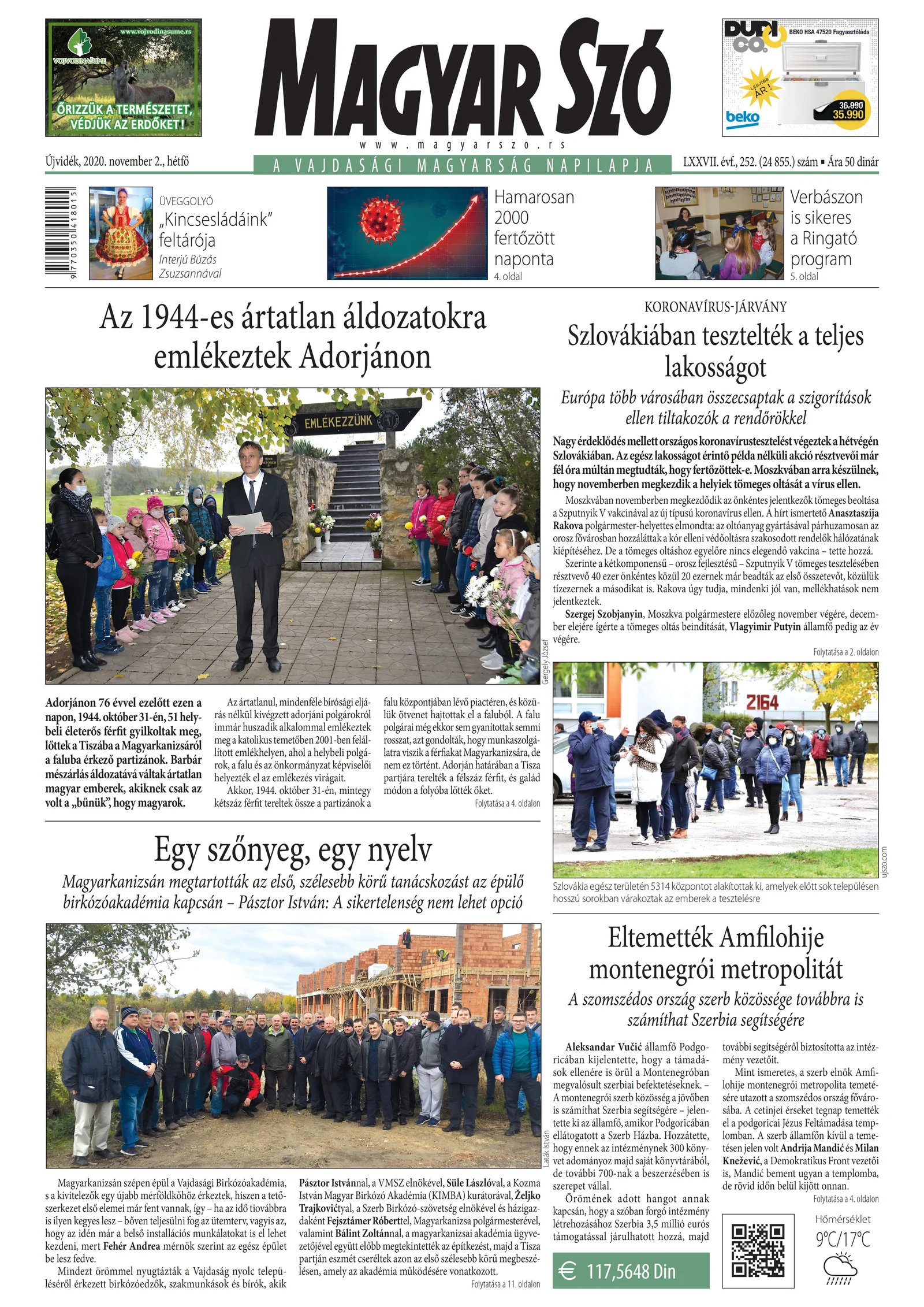 Magyar Szó, 77. évf. 2020. november 2. 252. sz. 1–16. oldal