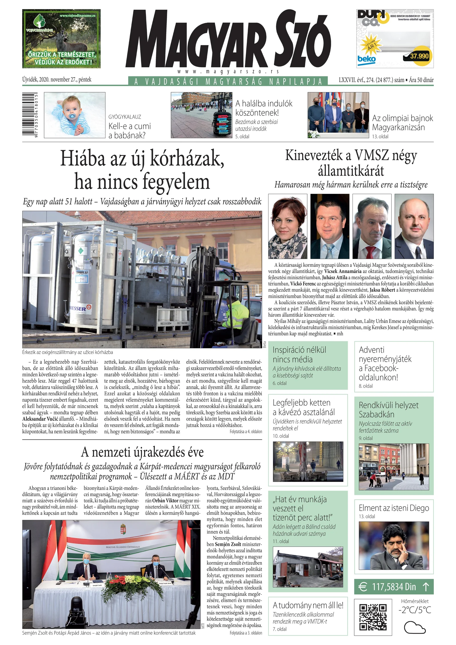 Magyar Szó, 77. évf. 2020. november 27. 274. sz. 1–16. oldal