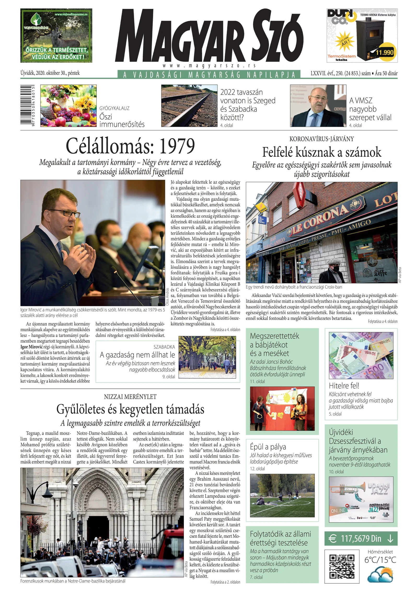 Magyar Szó, 77. évf. 2020. október 30. 250. sz. 1–16. oldal