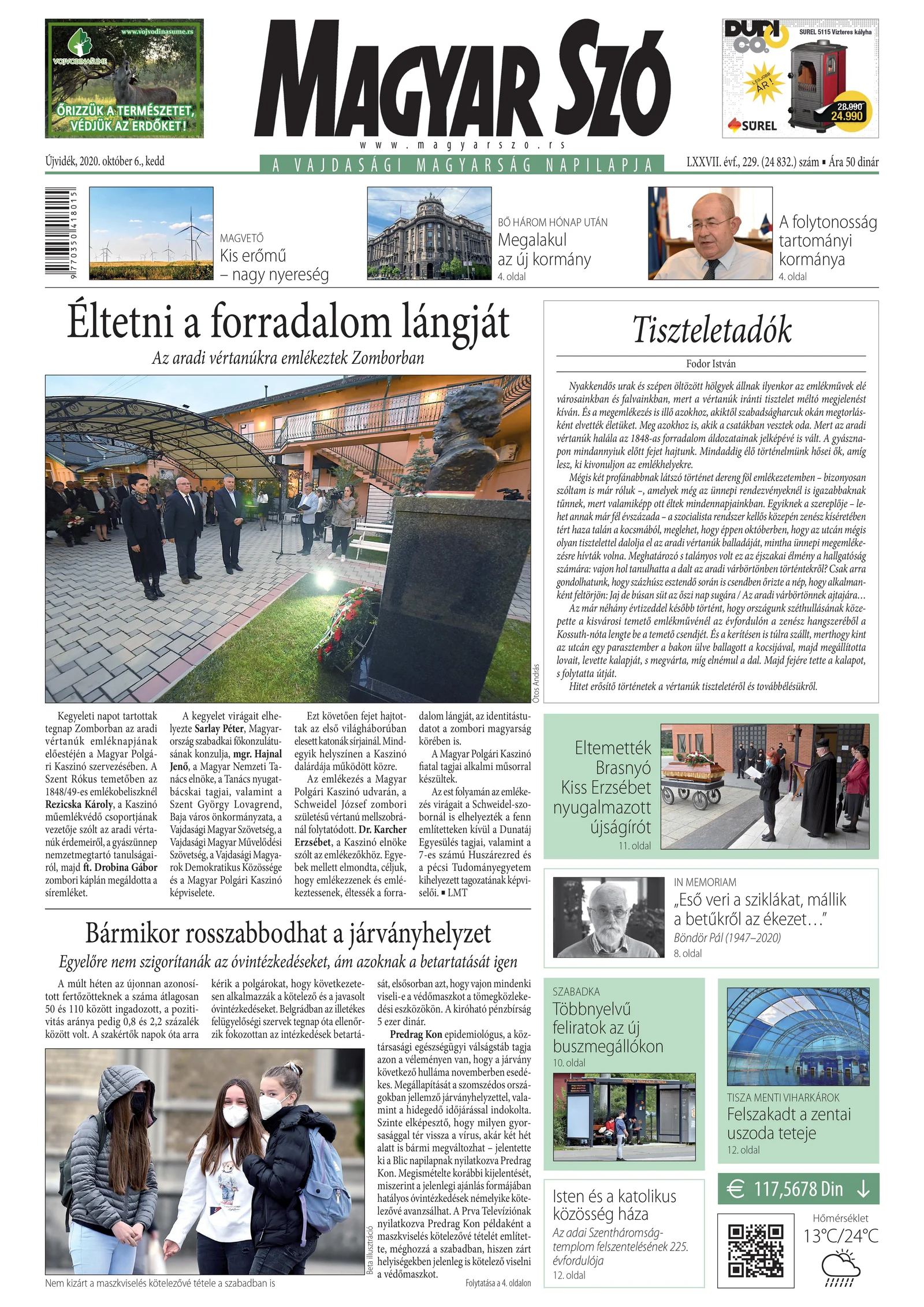 Magyar Szó, 77. évf. 2020. október 6. 229. sz. 1–20. oldal
