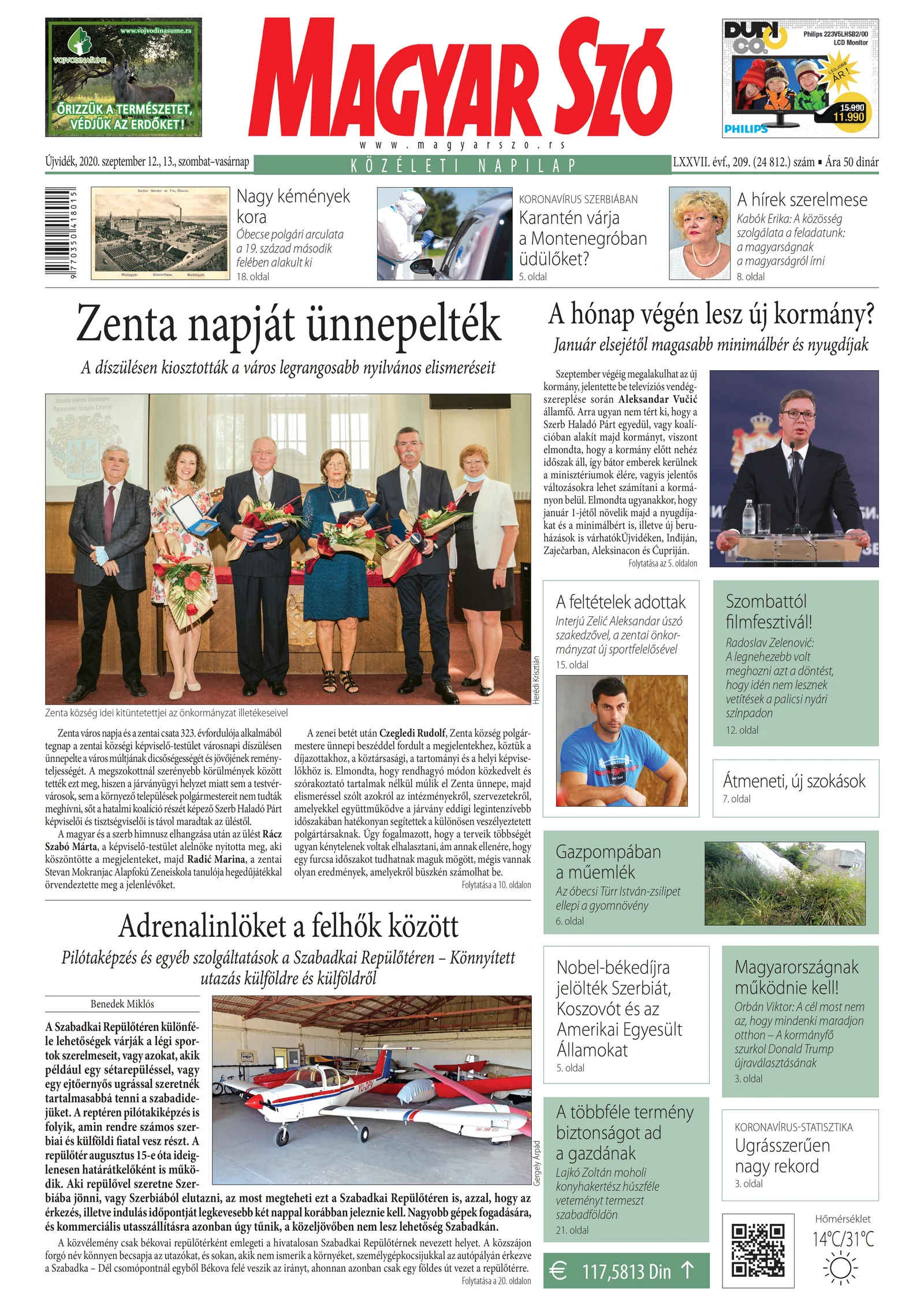 Magyar Szó, 77. évf. 2020. szeptember 12. – 13. 209. sz. 1–32. oldal