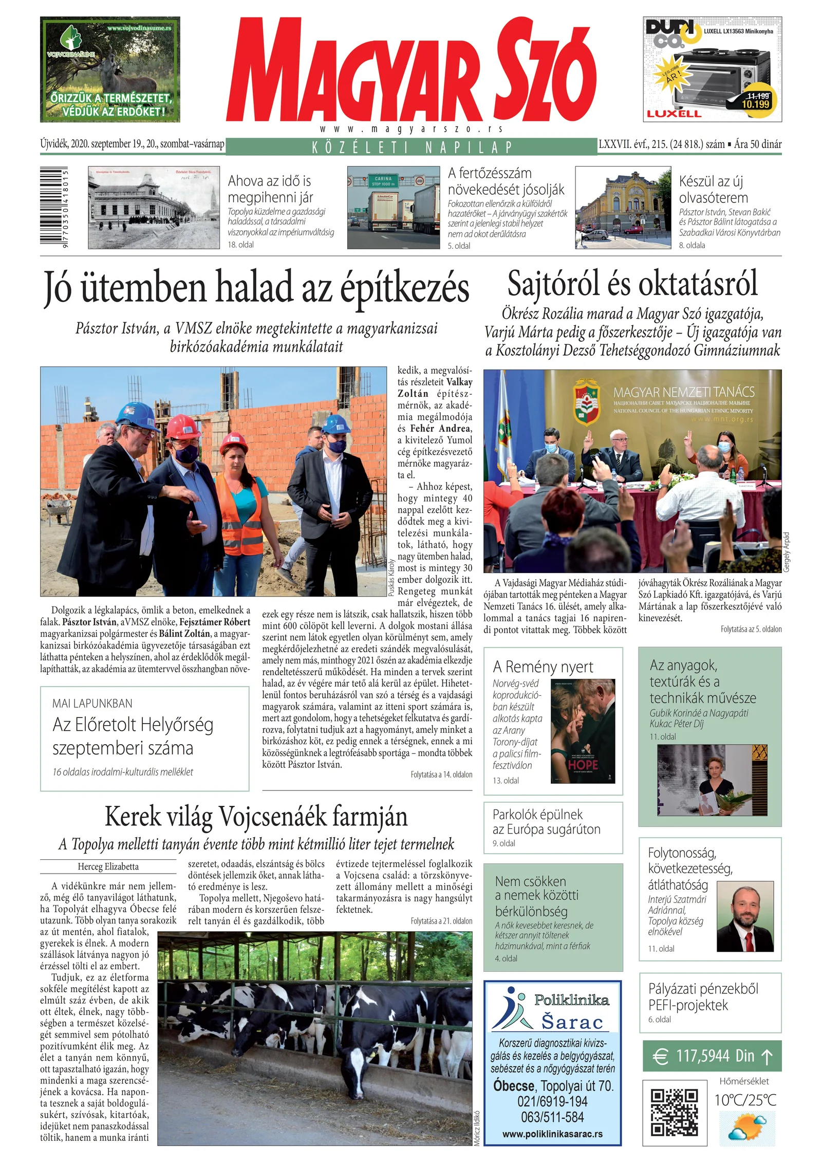 Magyar Szó, 77. évf. 2020. szeptember 19. – 20. 215. sz. 1–32. oldal