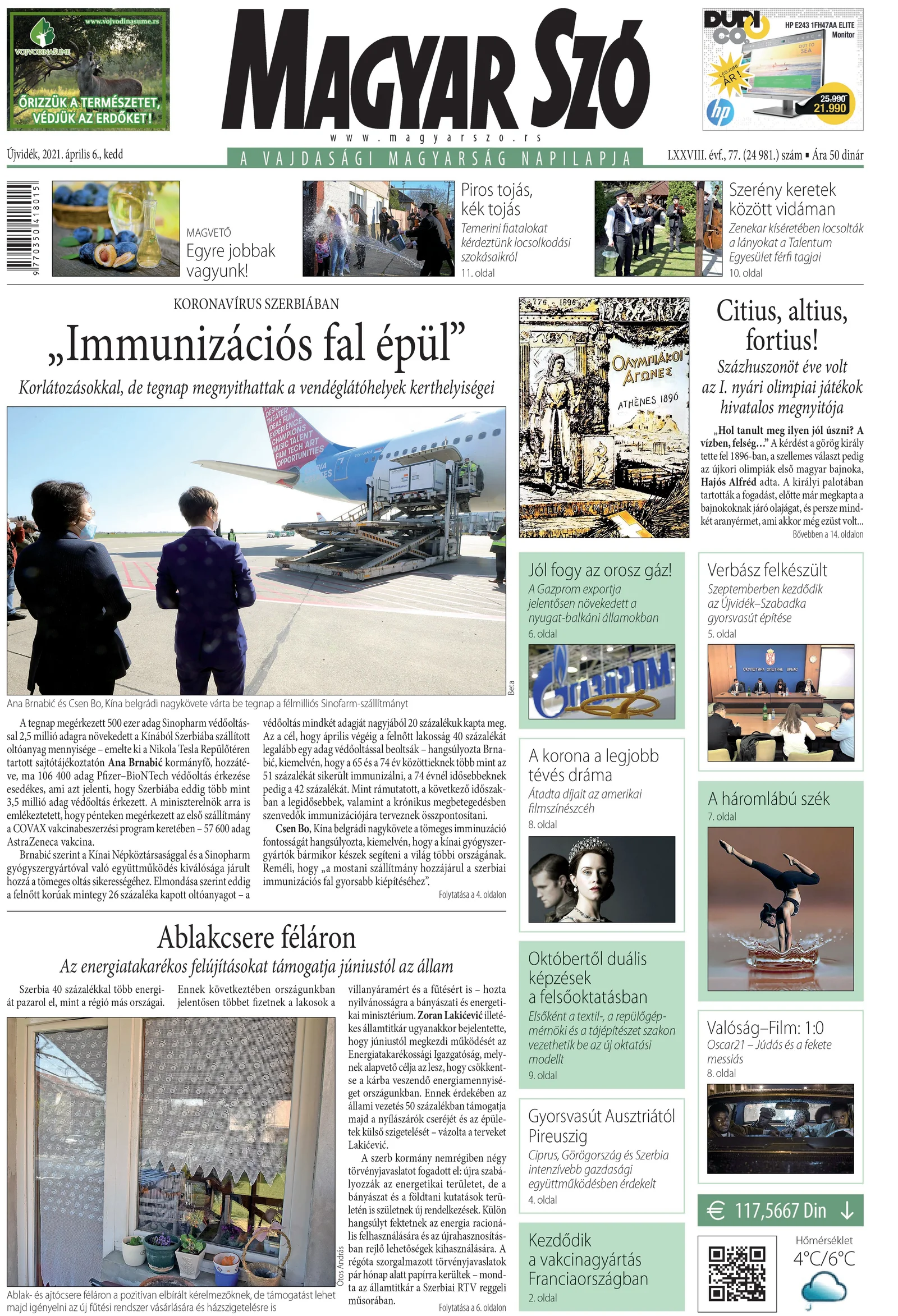 Magyar Szó, 78. évf. 2021. április 6. 77. sz. 1–20. oldal
