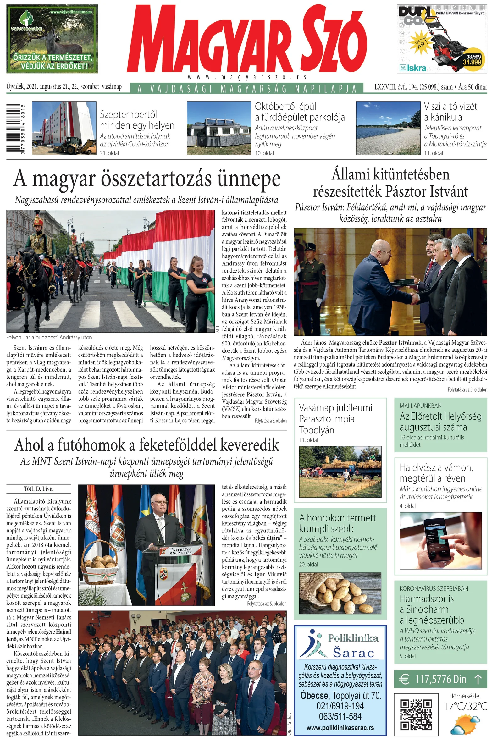 Magyar Szó, 78. évf. 2021. augusztus 21. – 22. 194. sz. 1–32. oldal