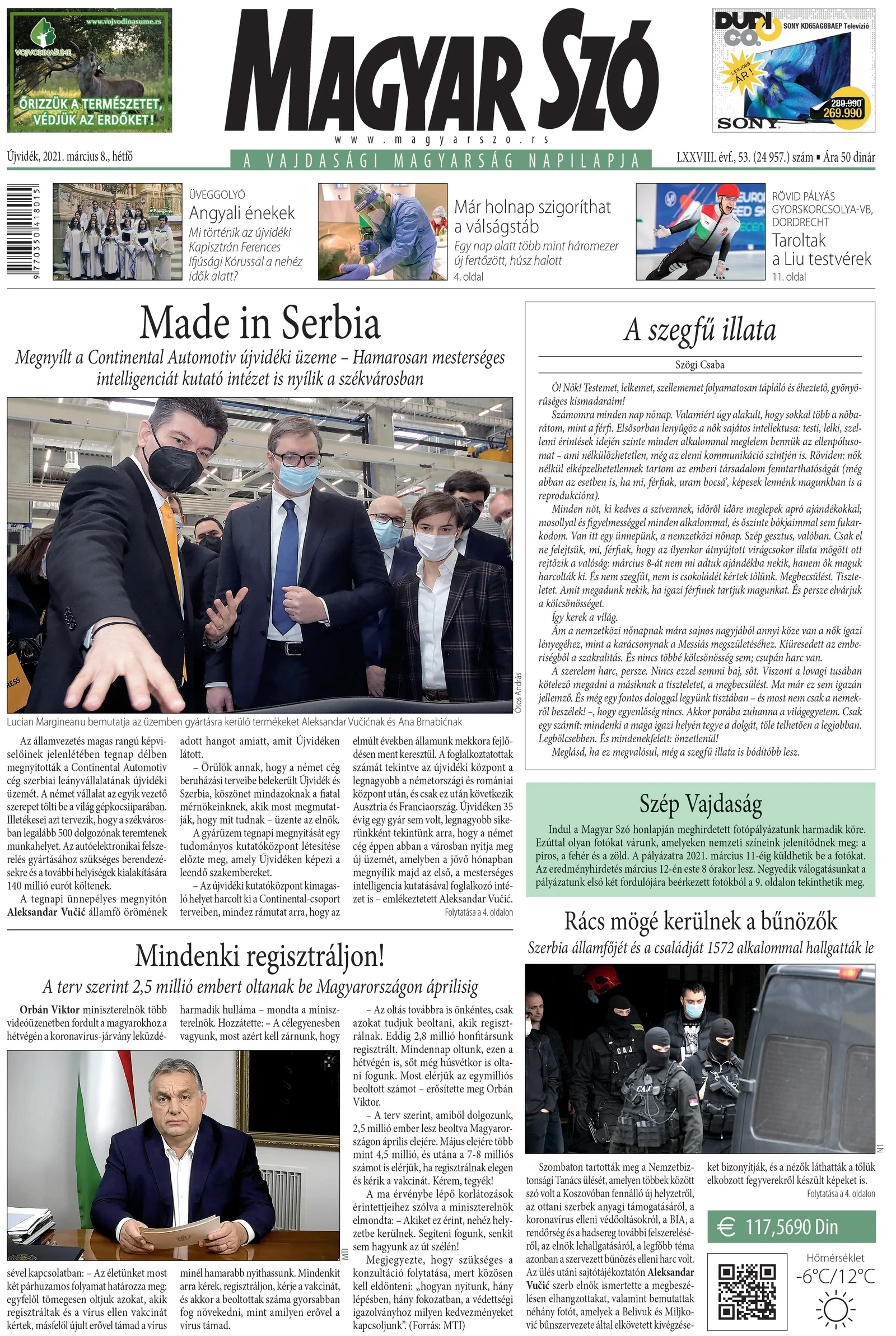 Magyar Szó, 78. évf. 2021. március 8. 53. sz. 1–16. oldal