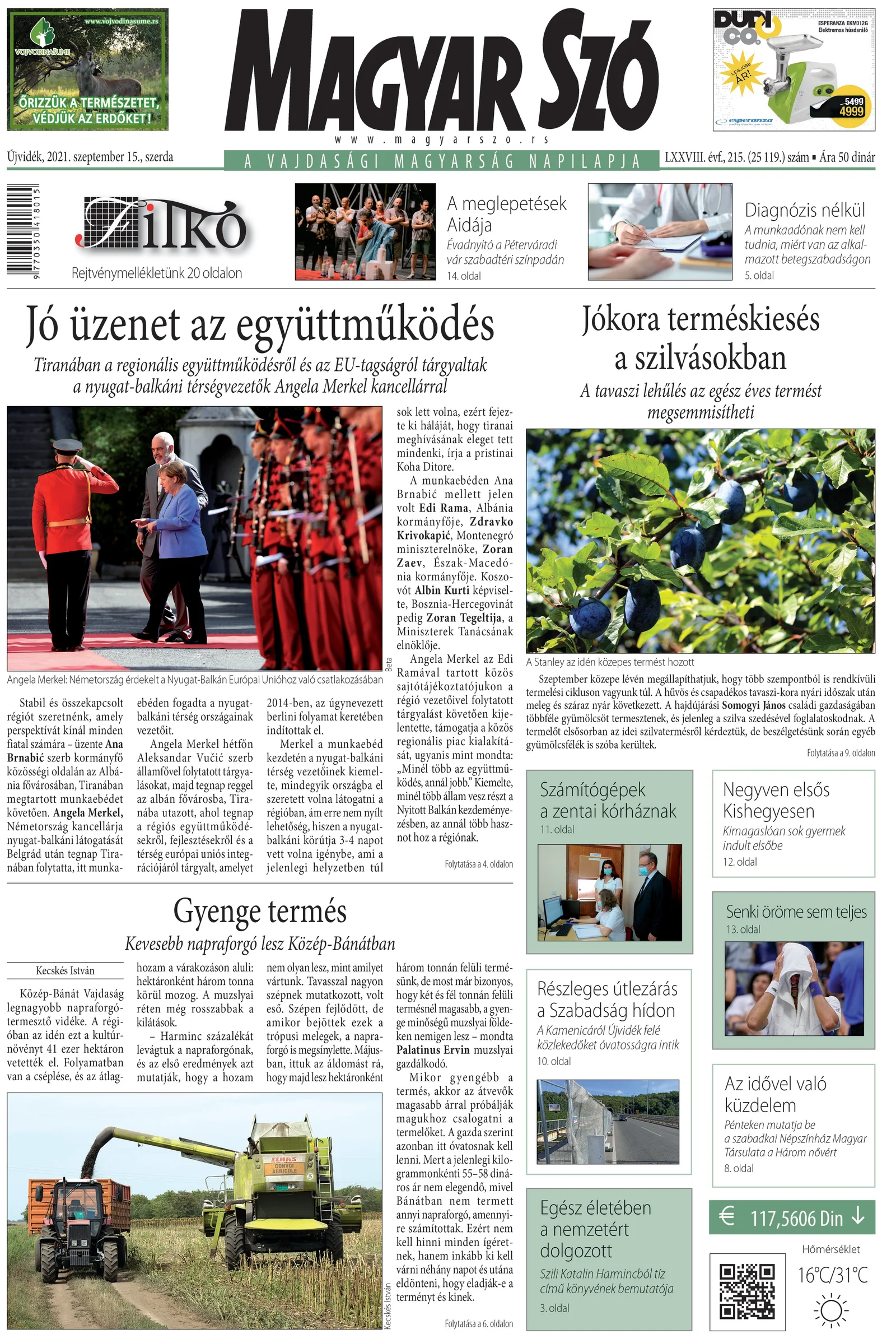 Magyar Szó, 78. évf. 2021. szeptember 15. 215. sz. 1–16. oldal