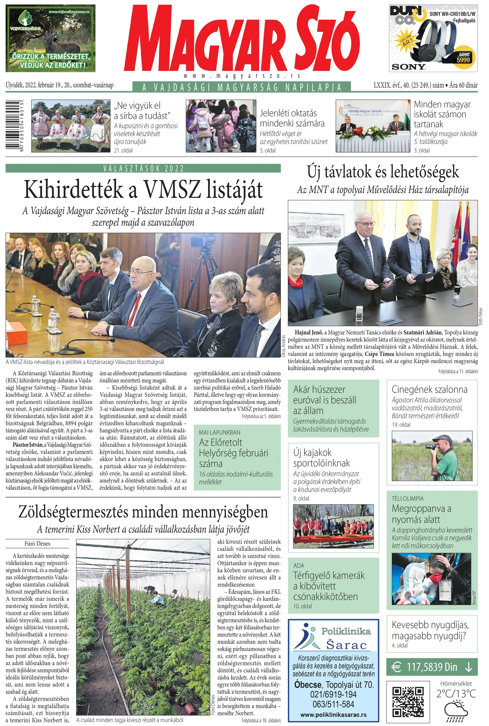 Magyar Szó, 79. évf. 2022. február 19. – 20. 40. sz. 1–32. oldal
