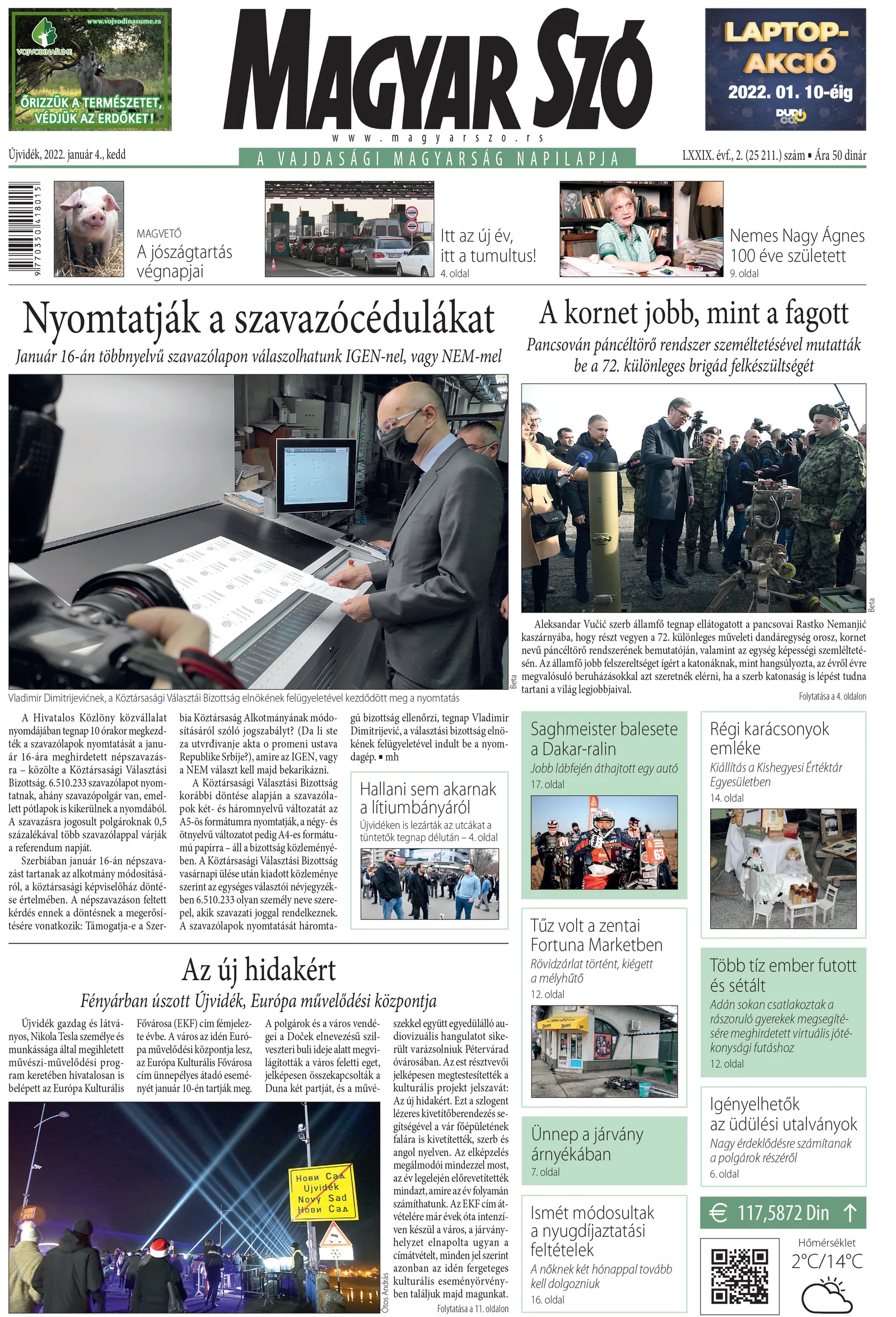 Magyar Szó, 79. évf. 2022. január 4. 2. sz. 1–20. oldal