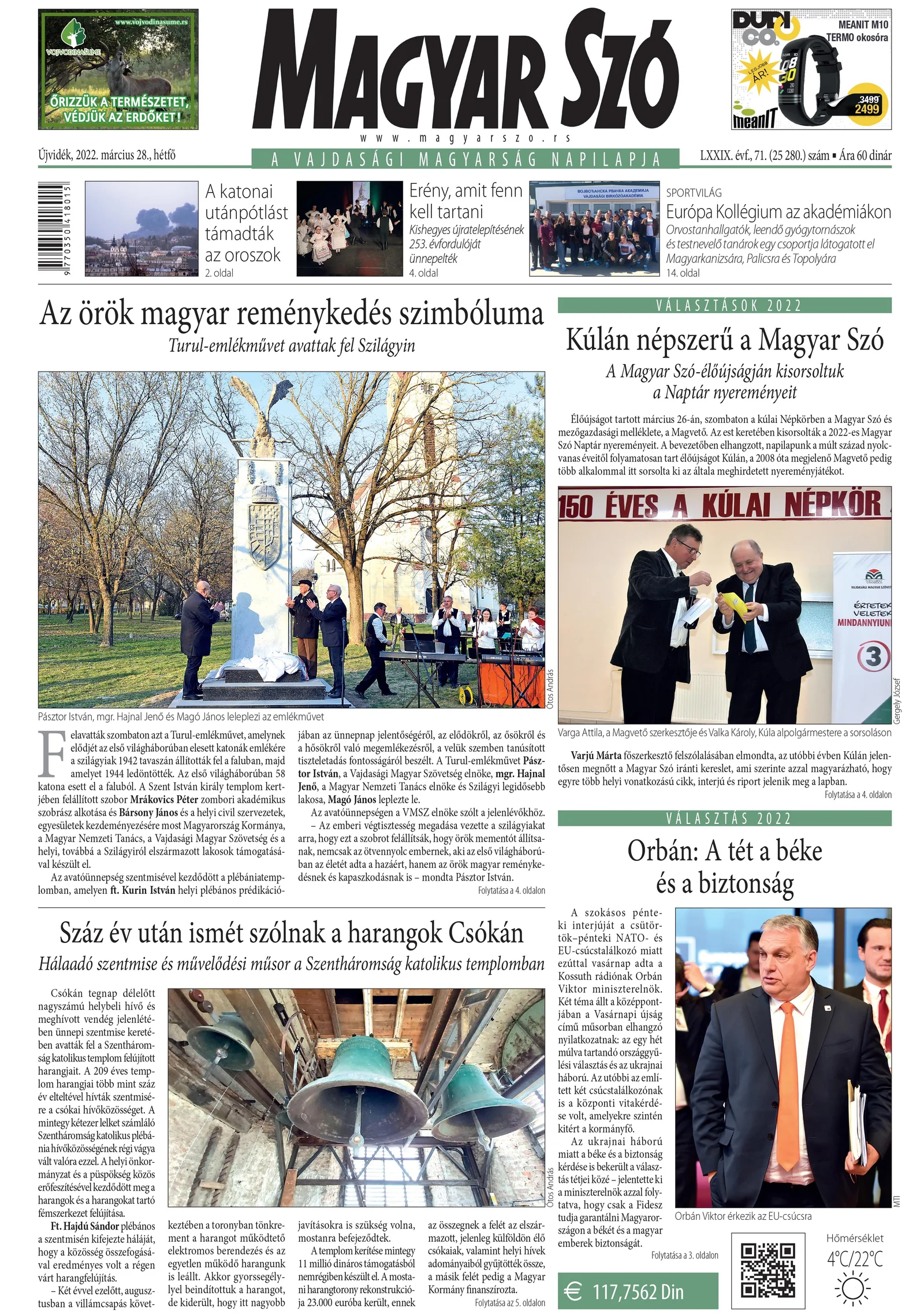 Magyar Szó, 79. évf. 2022. március 28. 71. sz. 1–16. oldal