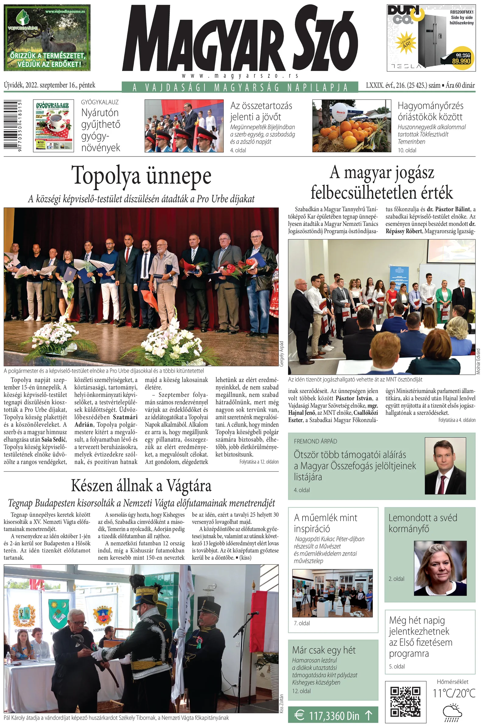 Magyar Szó, 79. évf. 2022. szeptember 16. 216. sz. 1–16. oldal