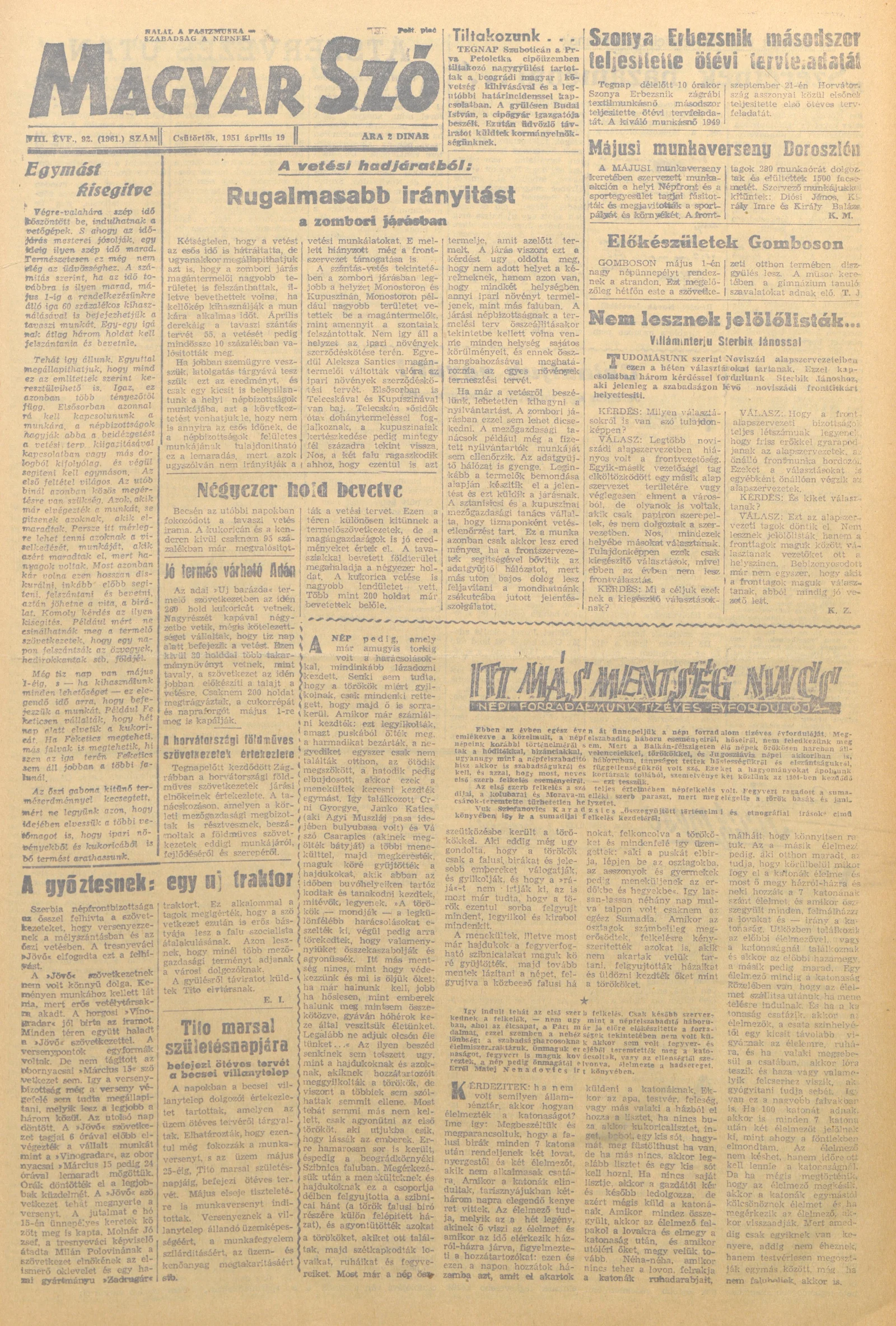Magyar Szó, 8. évf. 1951. április 19. 92. sz. 1–4. oldal