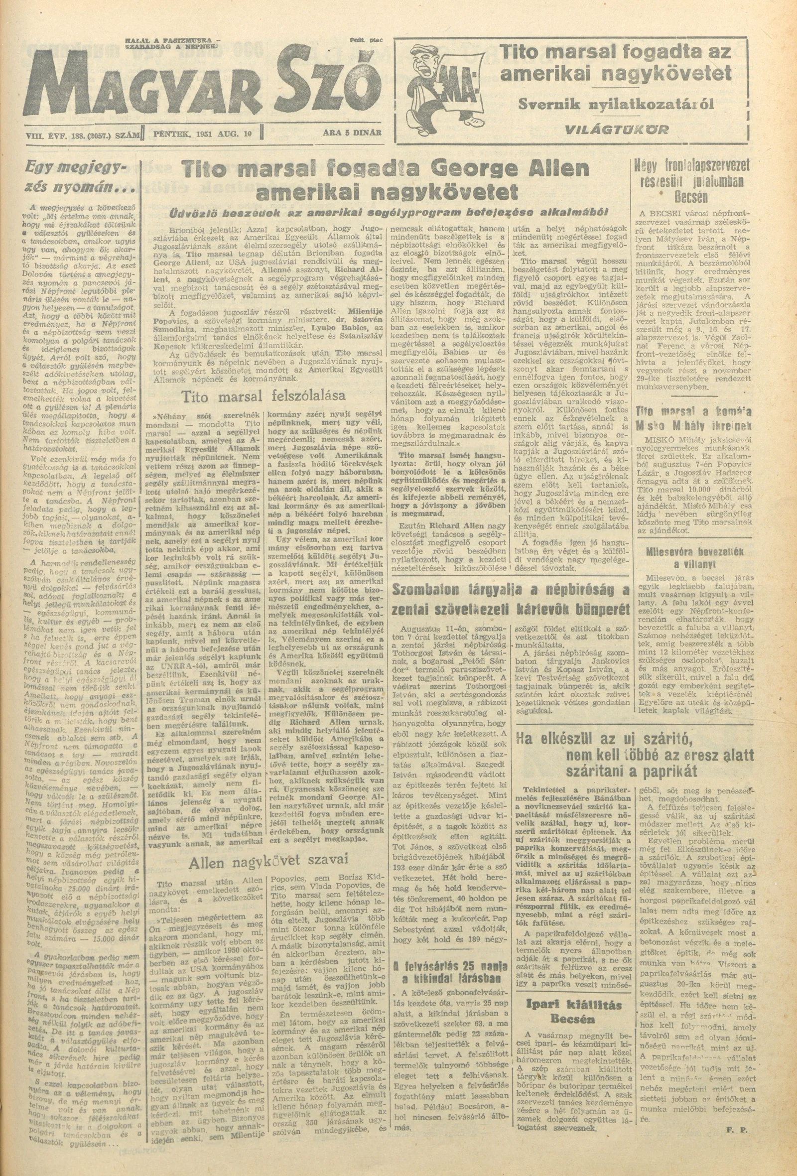 Magyar Szó, 8. évf. 1951. augusztus 10. 188. sz. 1–4. oldal