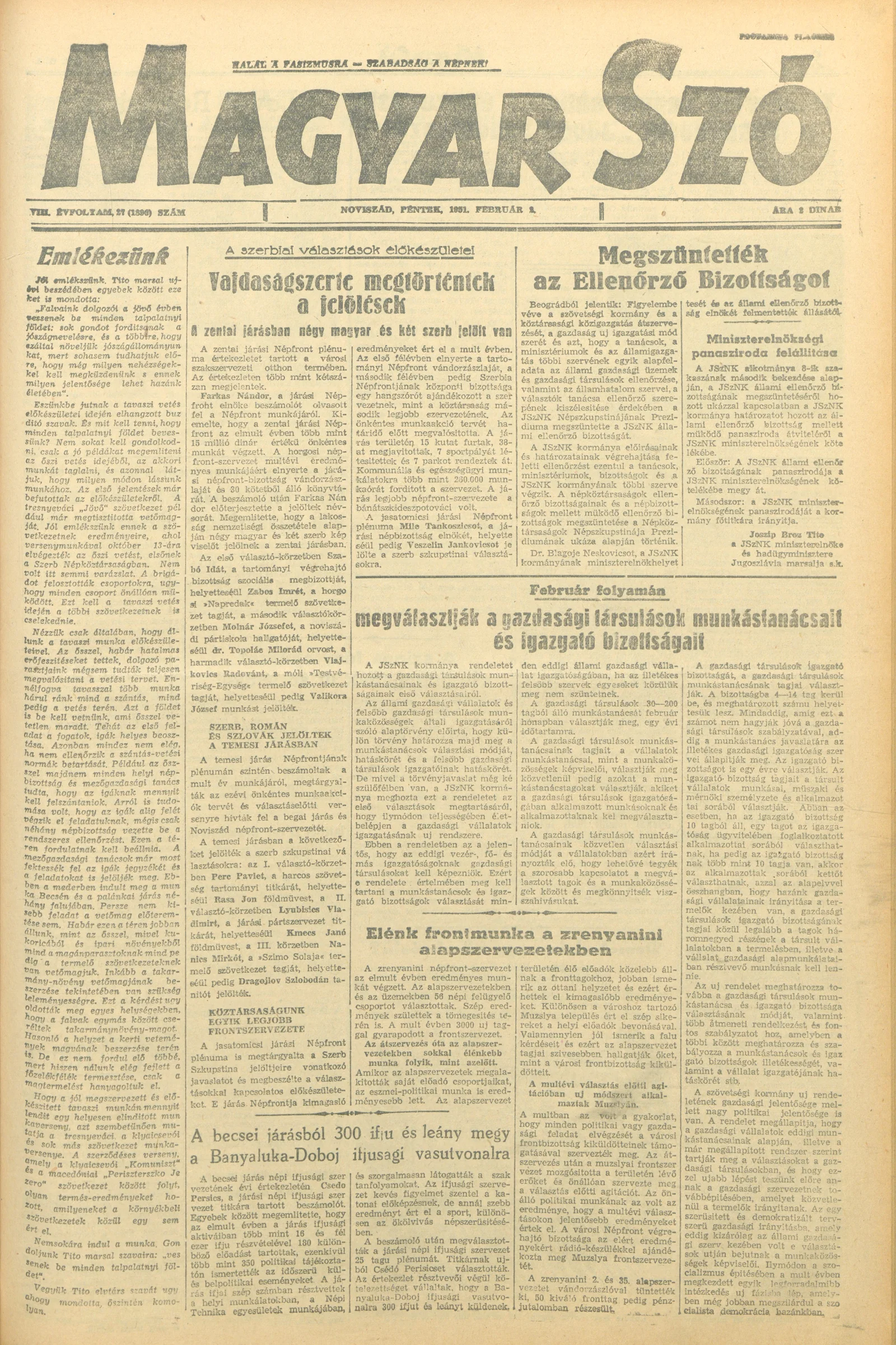 Magyar Szó, 8. évf. 1951. február 2. 27. sz. 1–4. oldal