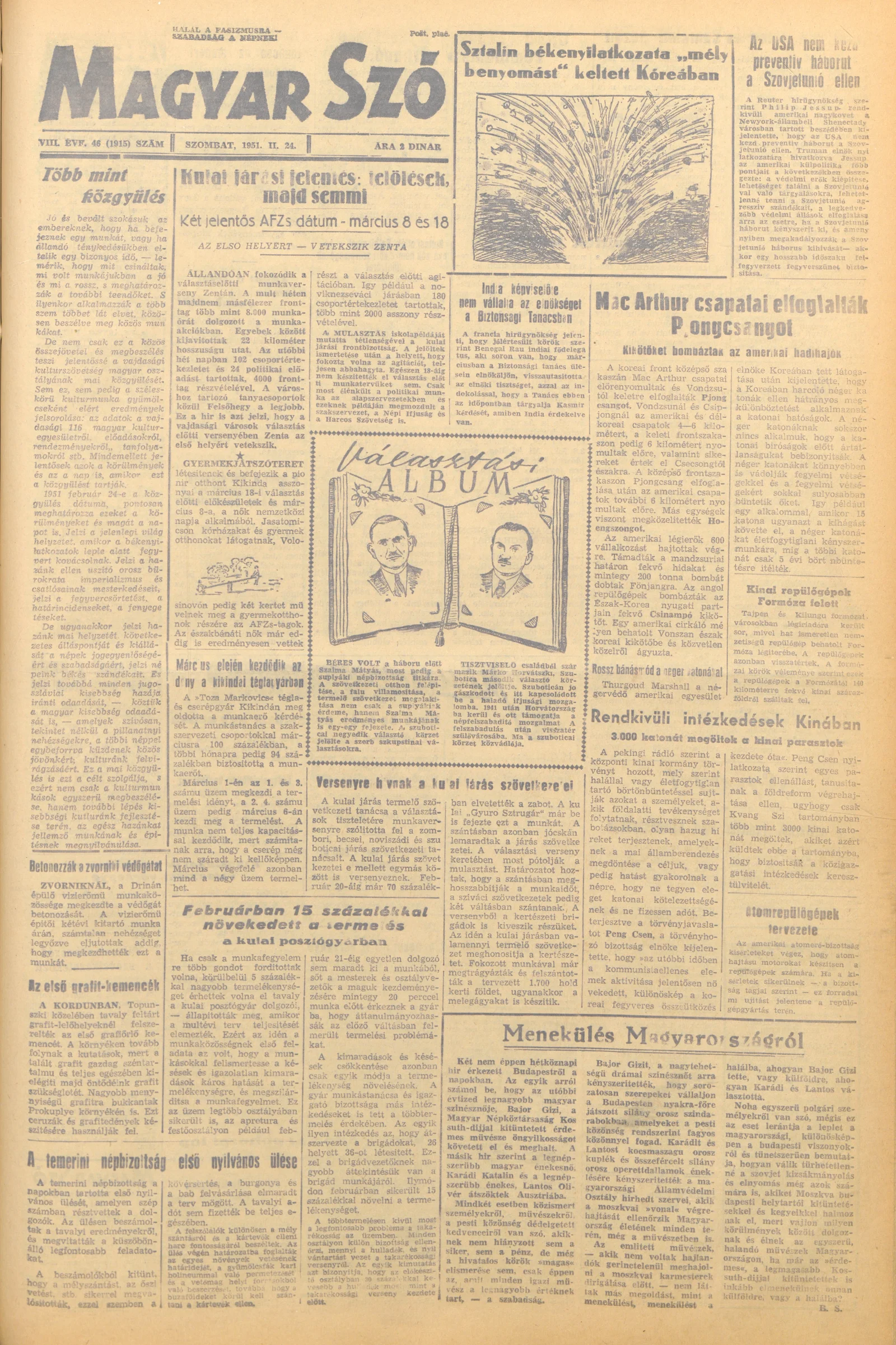 Magyar Szó, 8. évf. 1951. február 24. 46. sz. 1–4. oldal