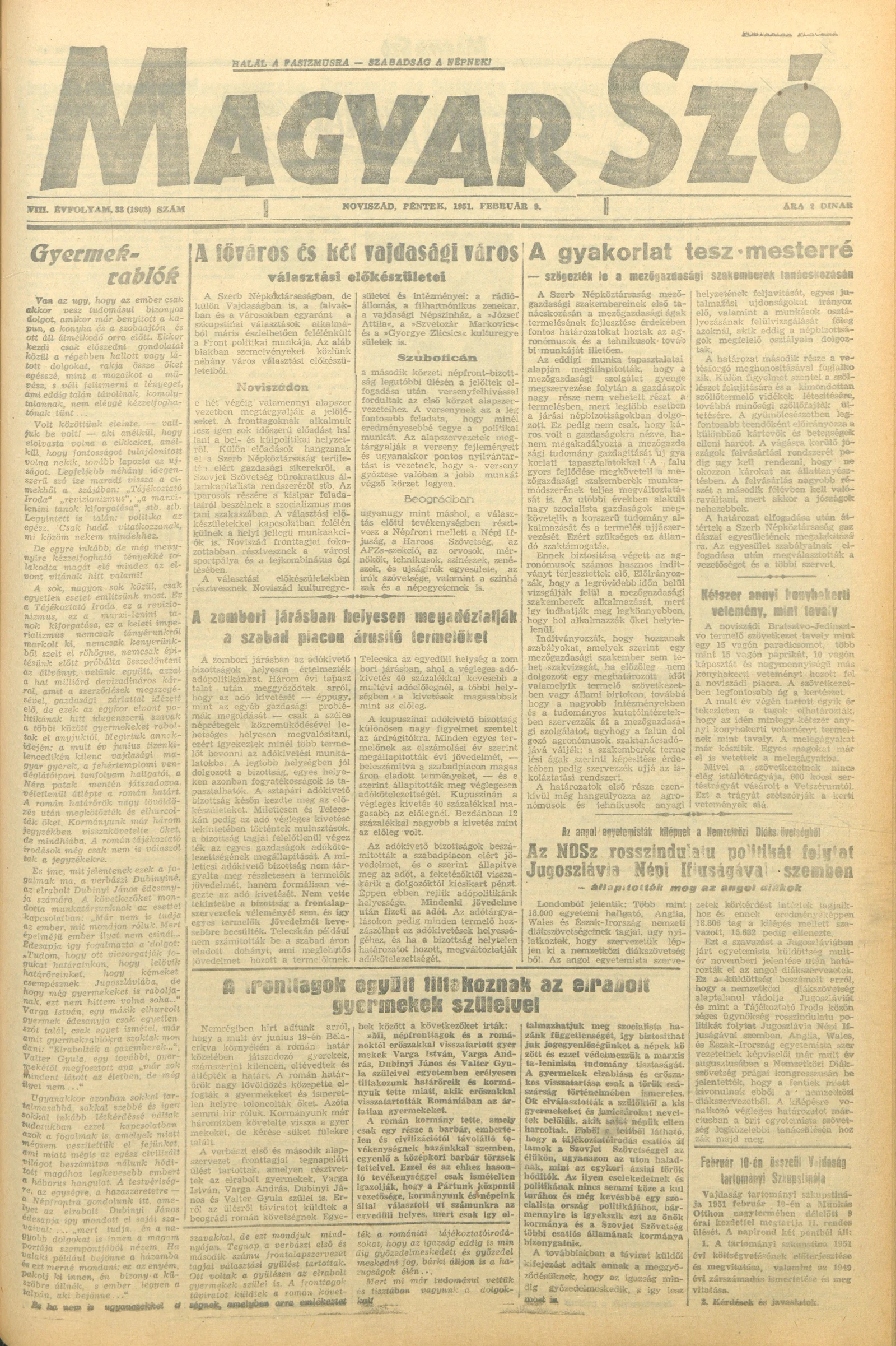 Magyar Szó, 8. évf. 1951. február 9. 33. sz. 1–4. oldal