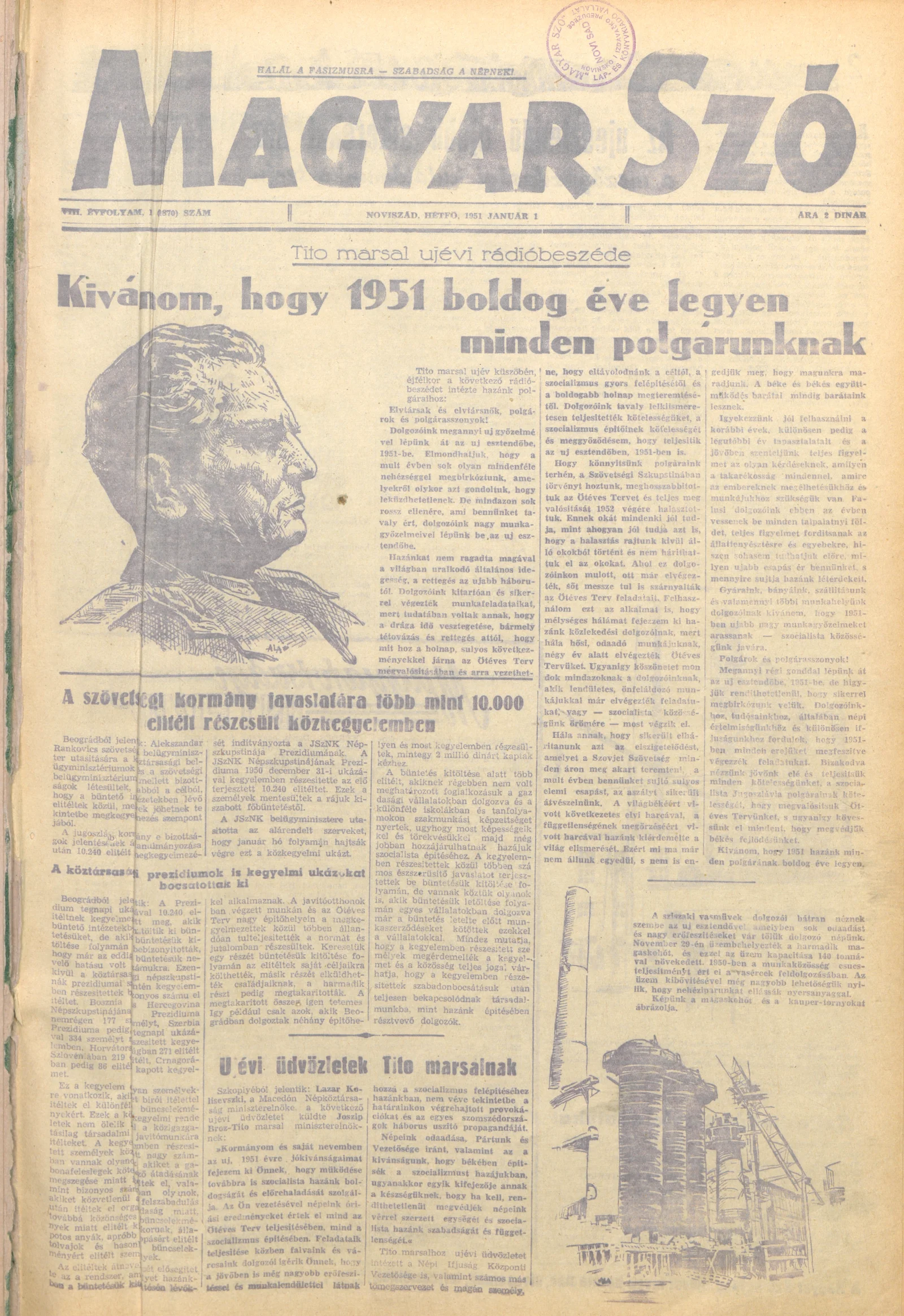 Magyar Szó, 8. évf. 1951. január 1. 1. sz. 1–4. oldal