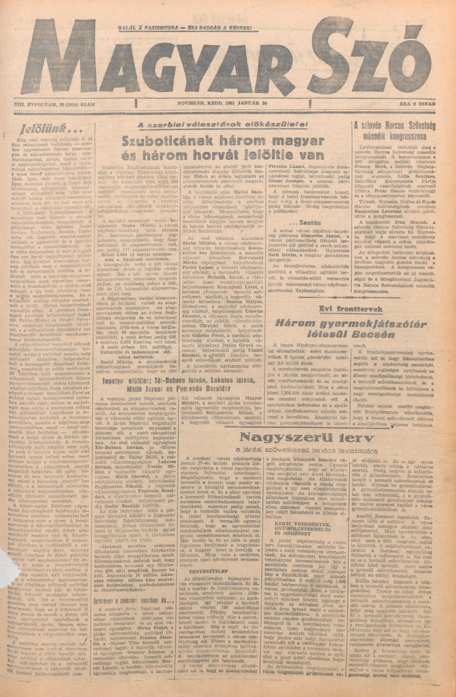 Magyar Szó, 8. évf. 1951. január 30. 25. sz. 1–4. oldal
