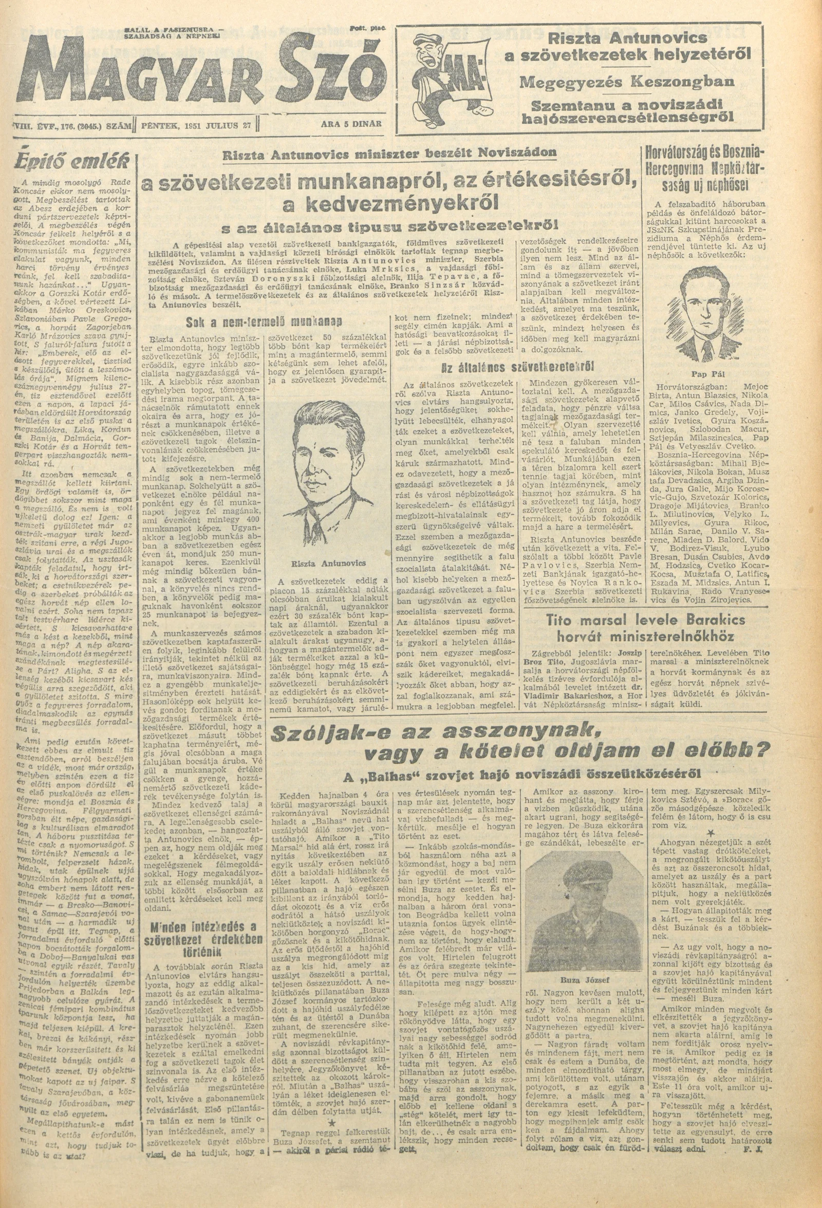 Magyar Szó, 8. évf. 1951. július 27. 176. sz. 1–4. oldal