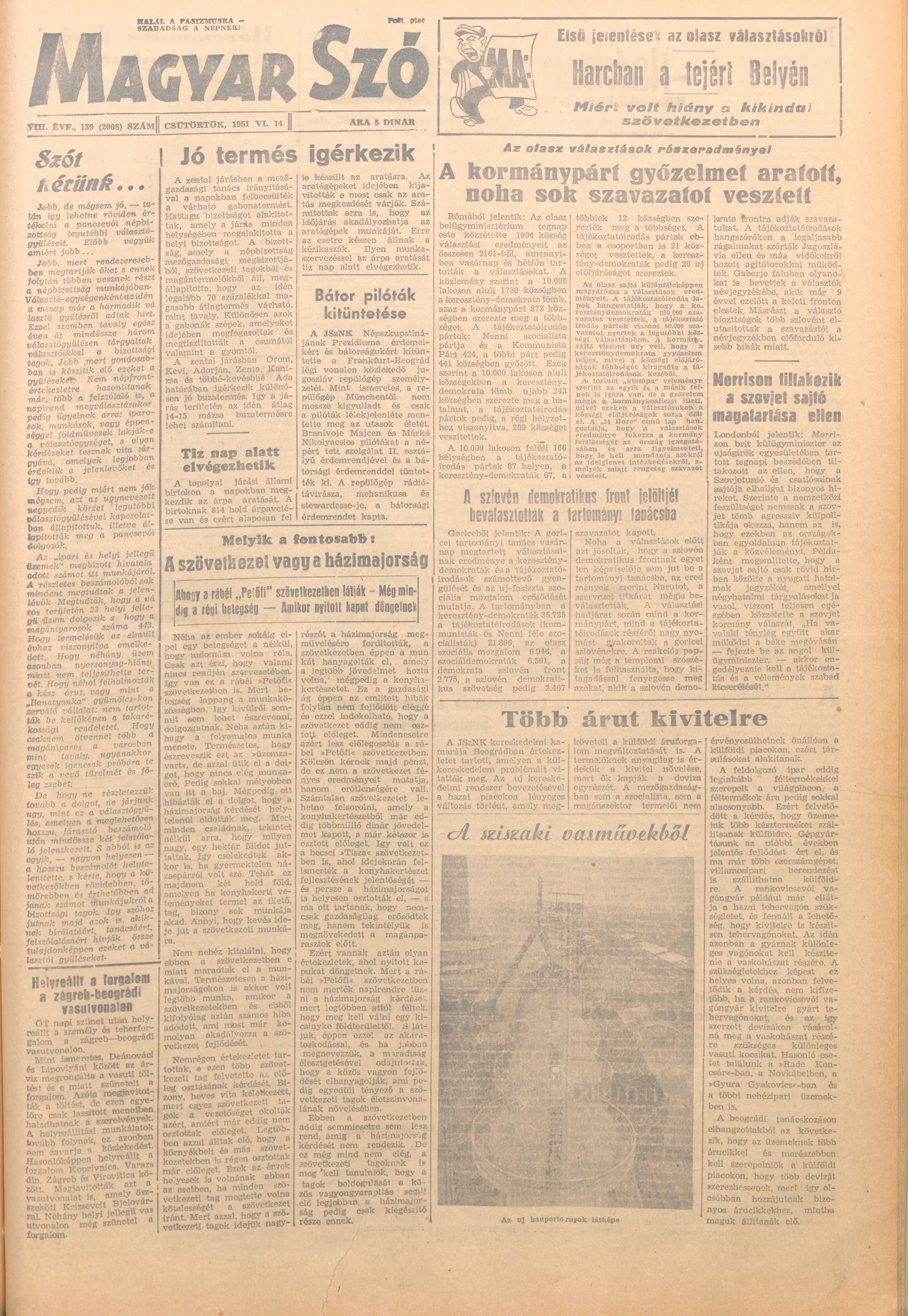 Magyar Szó, 8. évf. 1951. június 14. 139. sz. 1–4. oldal