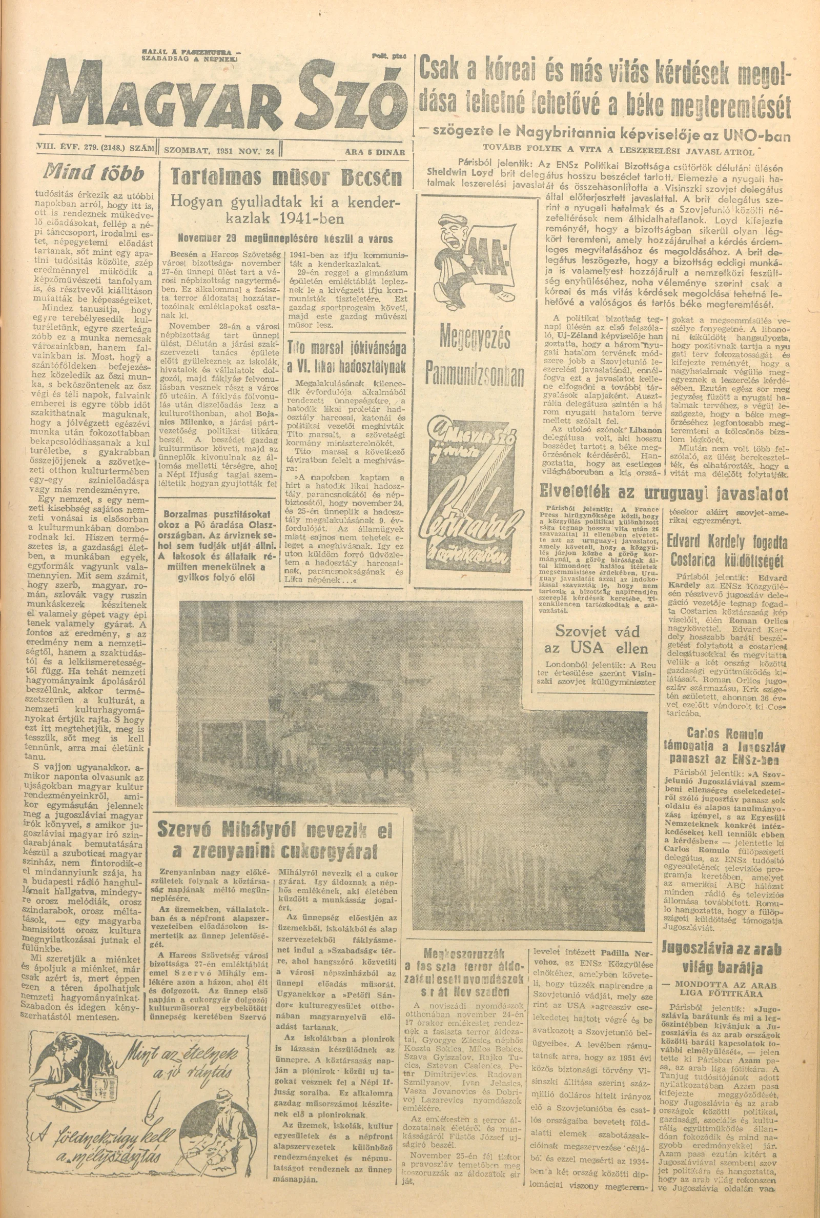 Magyar Szó, 8. évf. 1951. november 24. 279. sz. 1–6. oldal