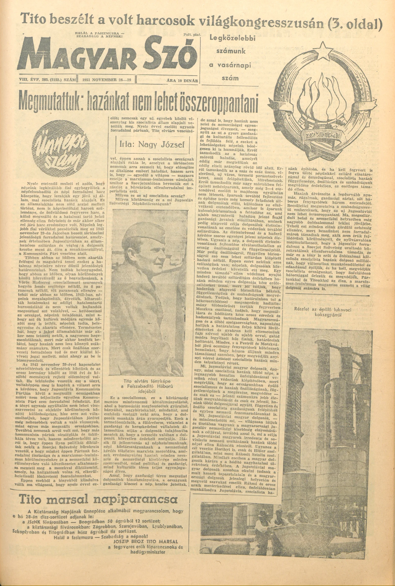 Magyar Szó, 8. évf. 1951. november 28. – 29. 283. sz. 1–12. oldal