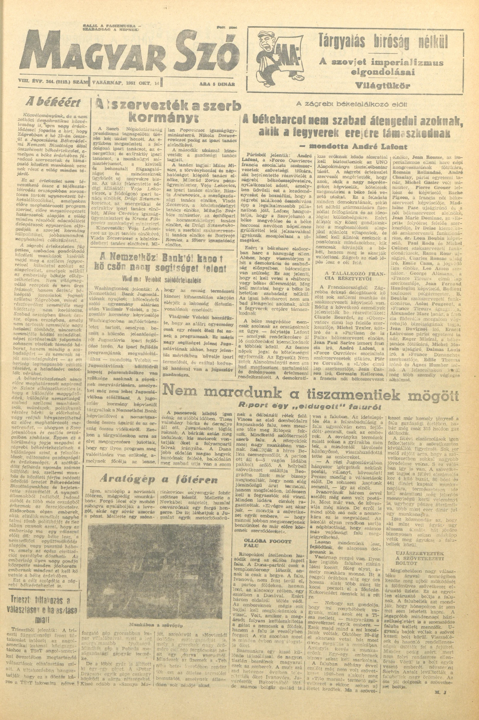 Magyar Szó, 8. évf. 1951. október 14. 244. sz. 1–8. oldal