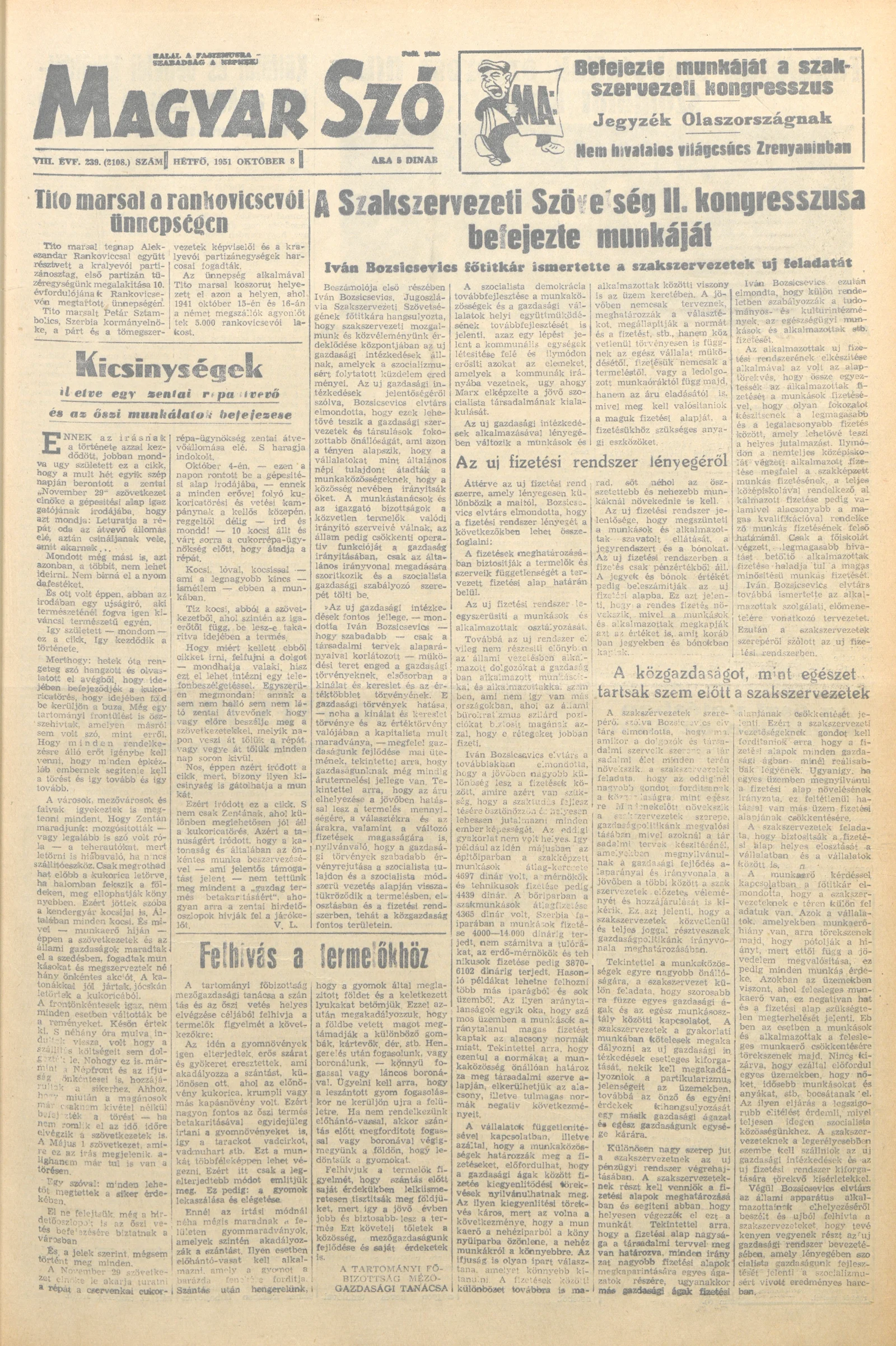 Magyar Szó, 8. évf. 1951. október 8. 239. sz. 1–4. oldal