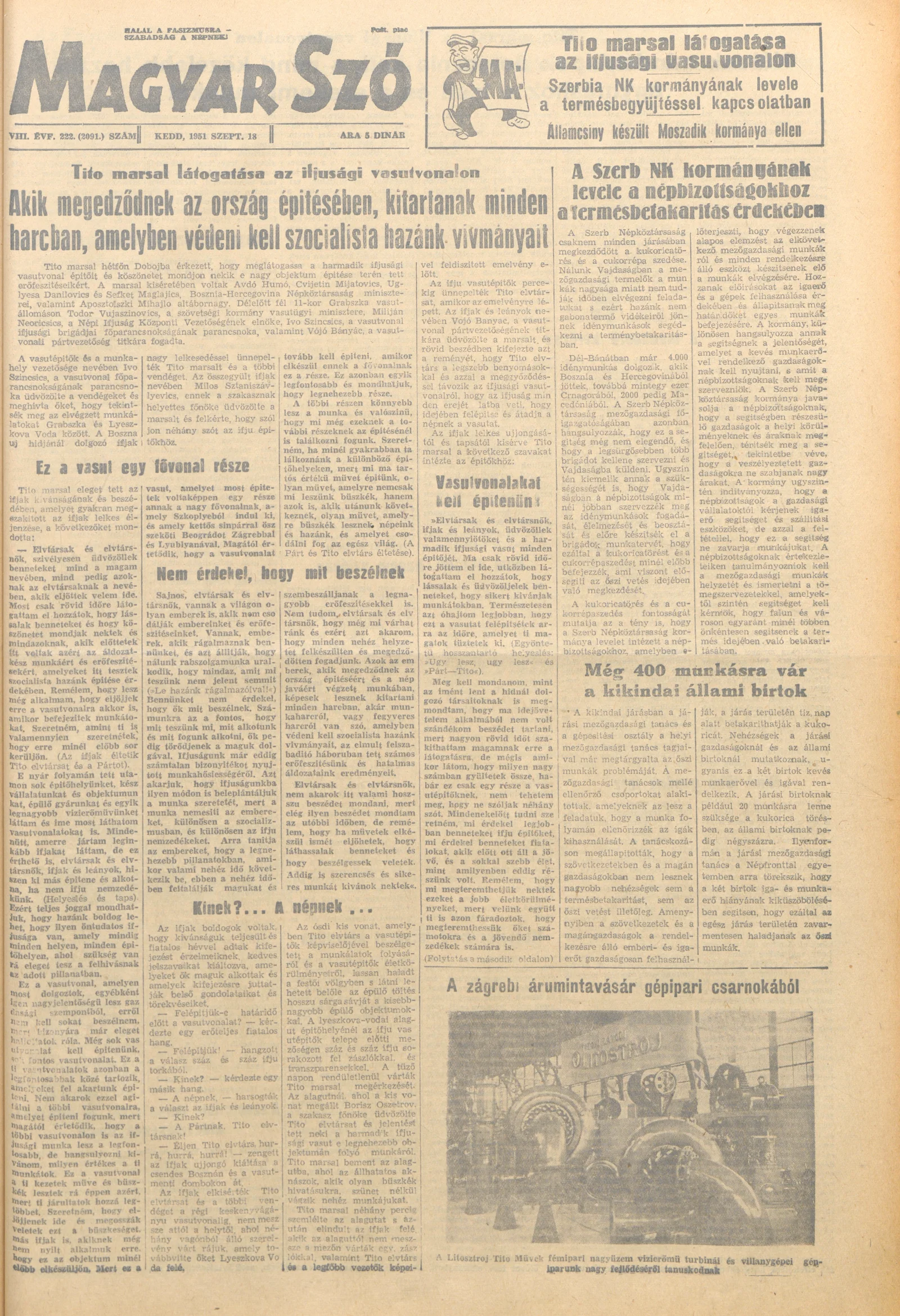 Magyar Szó, 8. évf. 1951. szeptember 18. 222. sz. 1–4. oldal