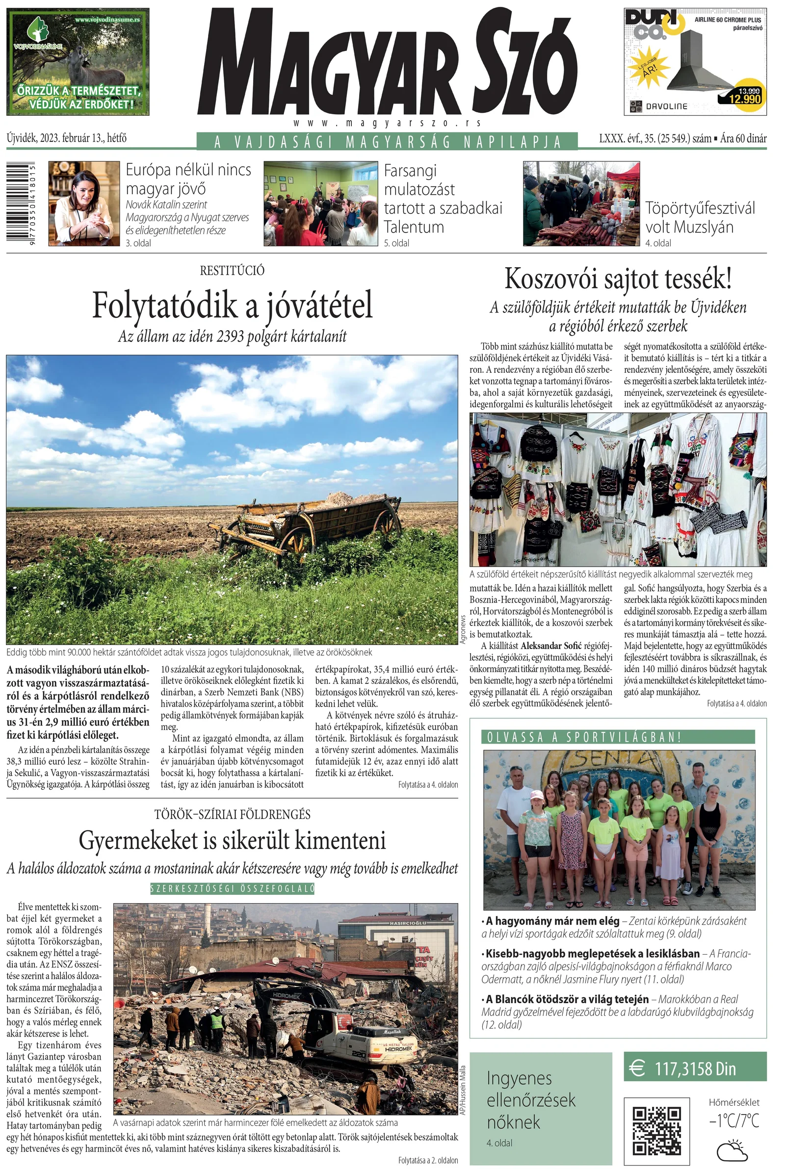 Magyar Szó, 80. évf. 2023. február 13. 35. sz. 1–16. oldal