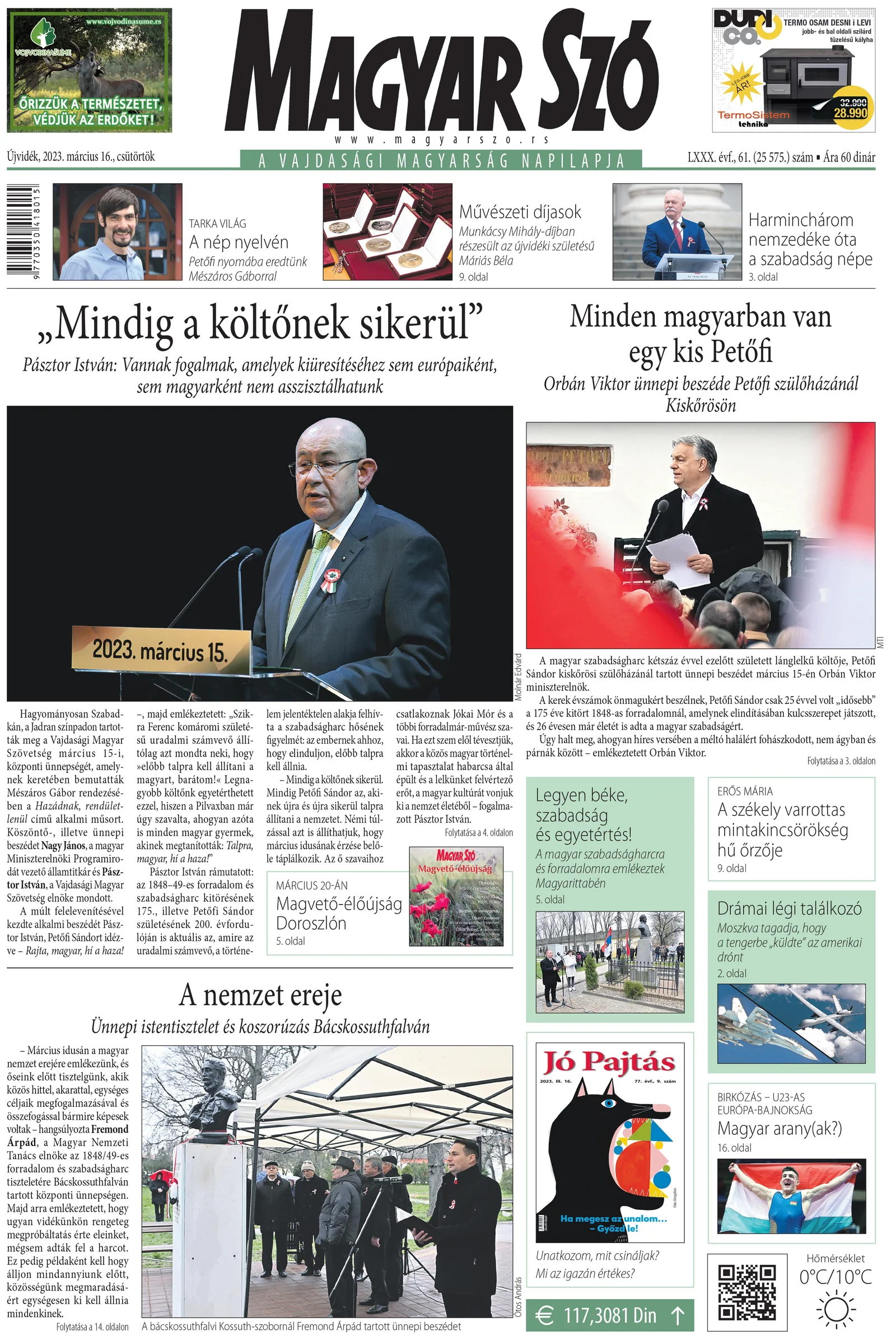 Magyar Szó, 80. évf. 2023. március 16. 61. sz. 1–20. oldal