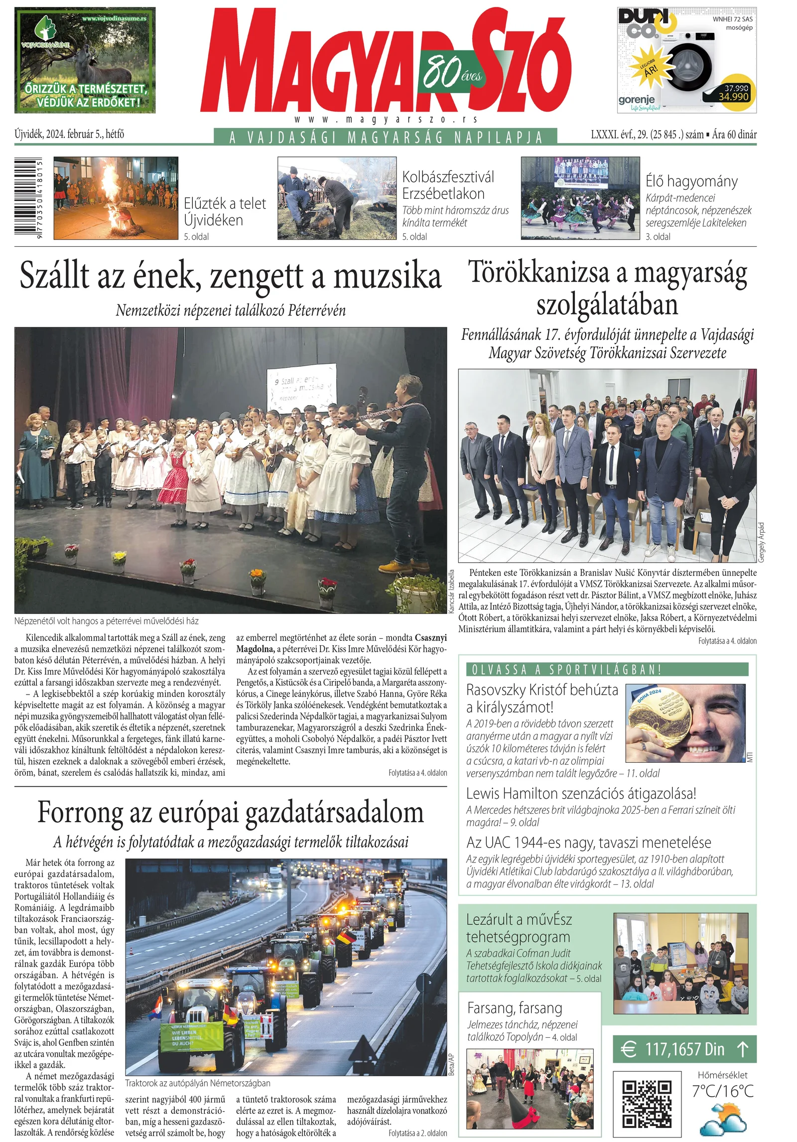 Magyar Szó, 81. évf. 2024. február 5. 29. sz. 1–16. oldal