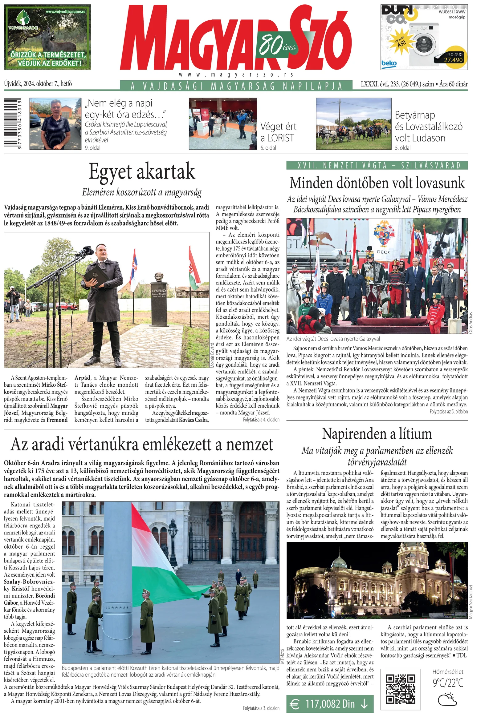 Magyar Szó, 81. évf. 2024. október 7. 233. sz. 1–16. oldal