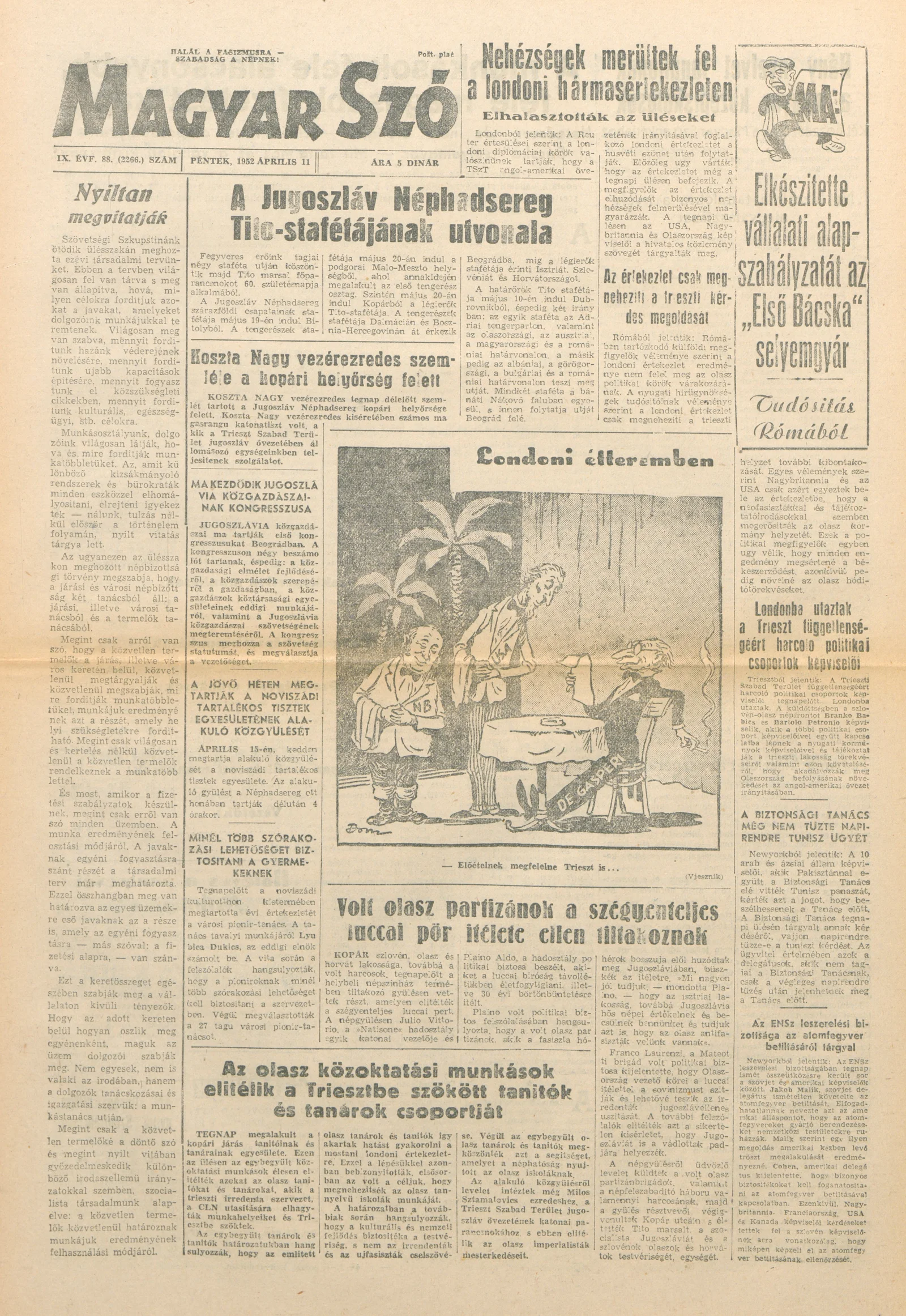 Magyar Szó, 9. évf. 1952. április 11. 88. sz. 1–4. oldal