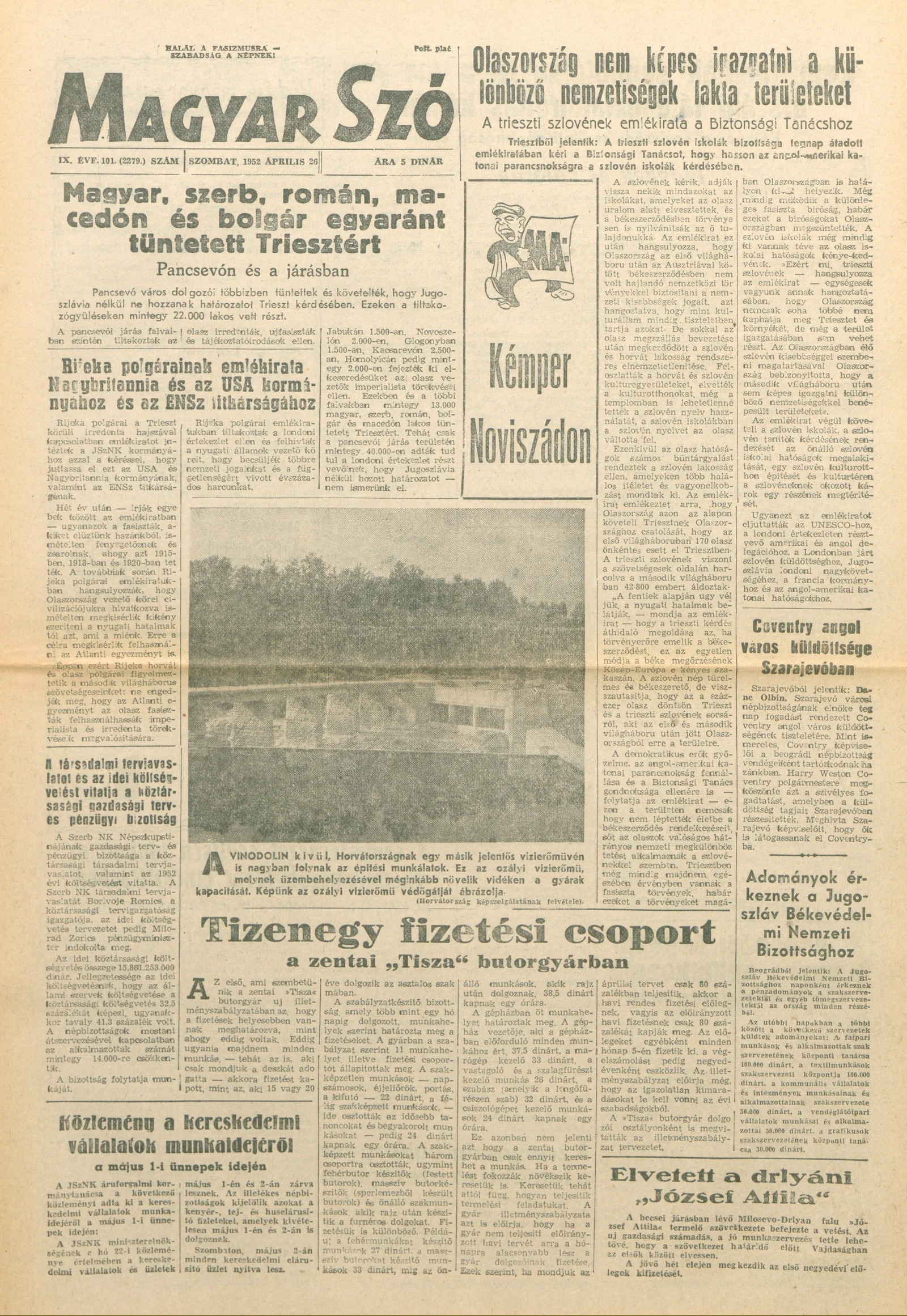 Magyar Szó, 9. évf. 1952. április 26. 101. sz. 1–4. oldal