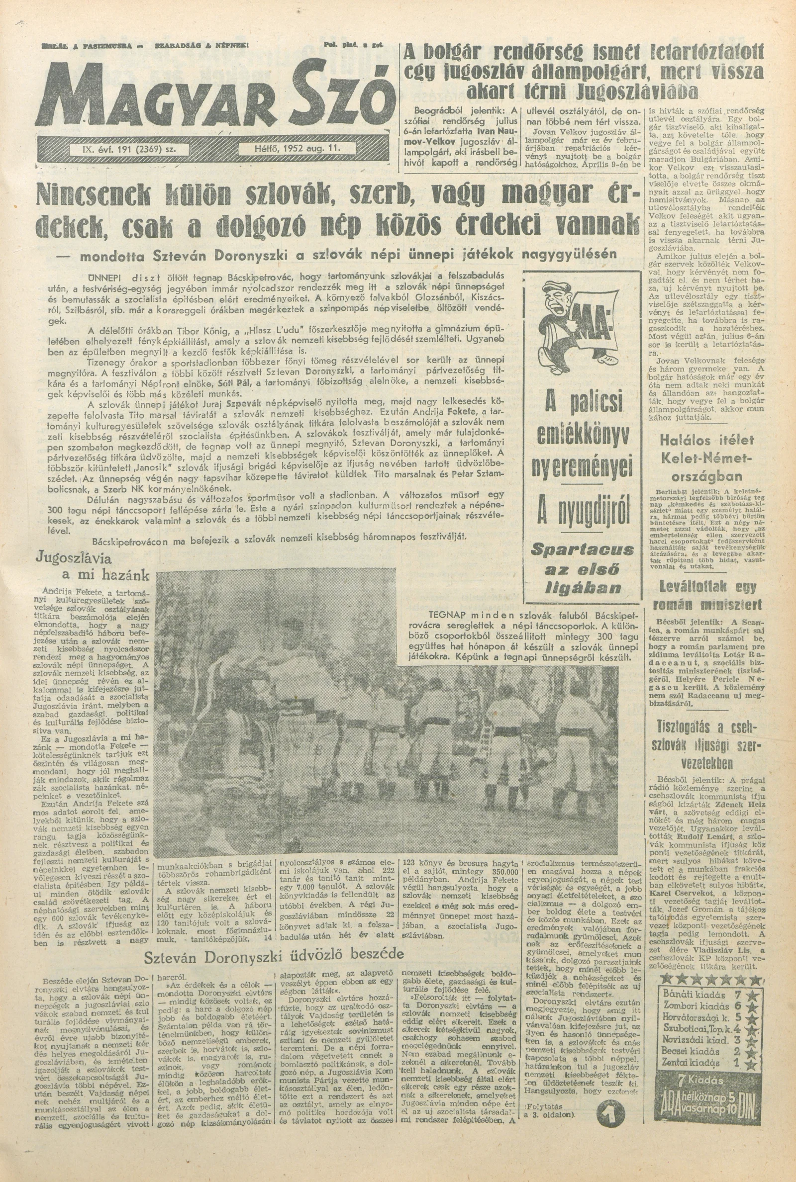 Magyar Szó, 9. évf. 1952. augusztus 11. 191. sz. 1–6. oldal