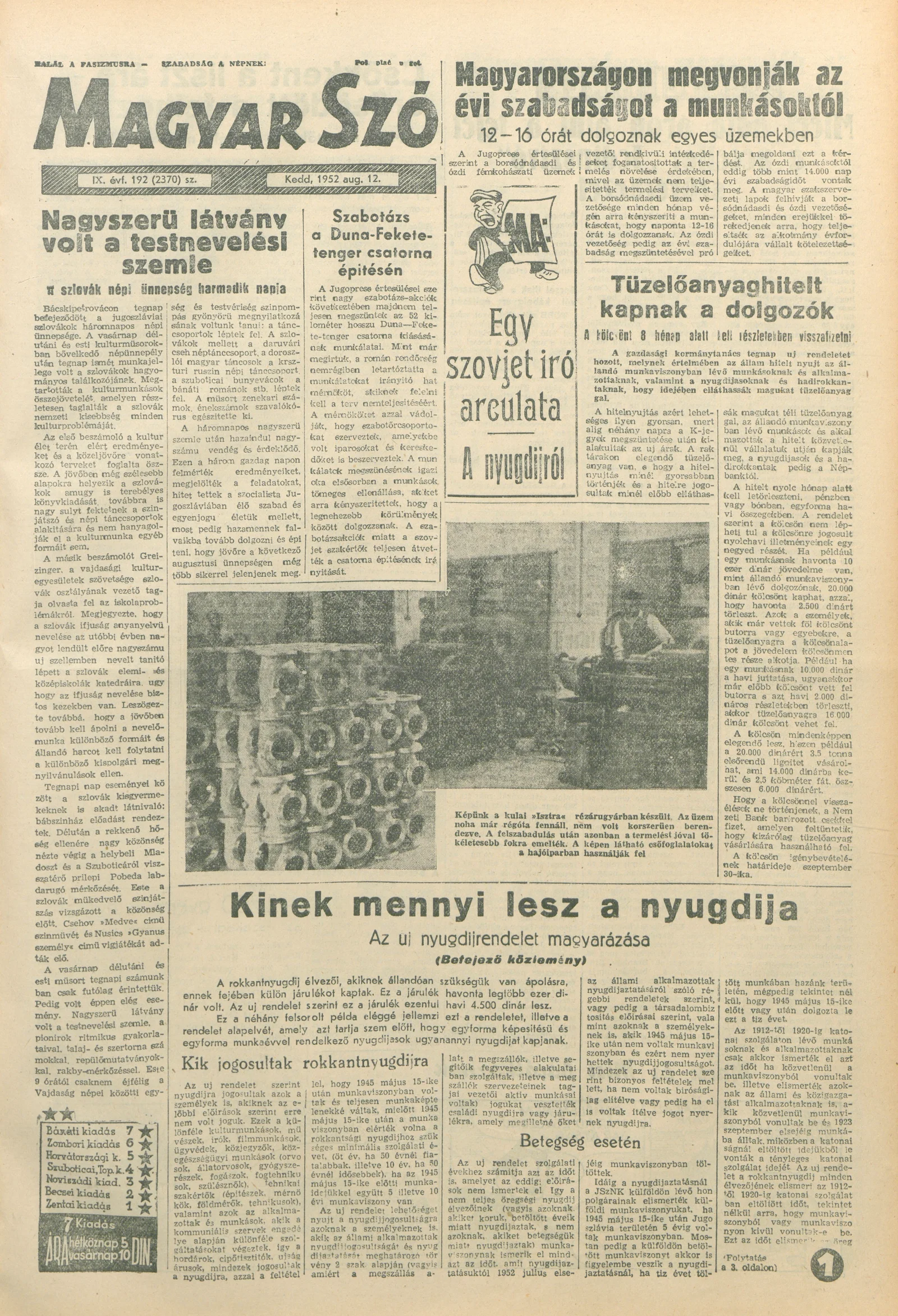Magyar Szó, 9. évf. 1952. augusztus 12. 192. sz. 1–10. oldal