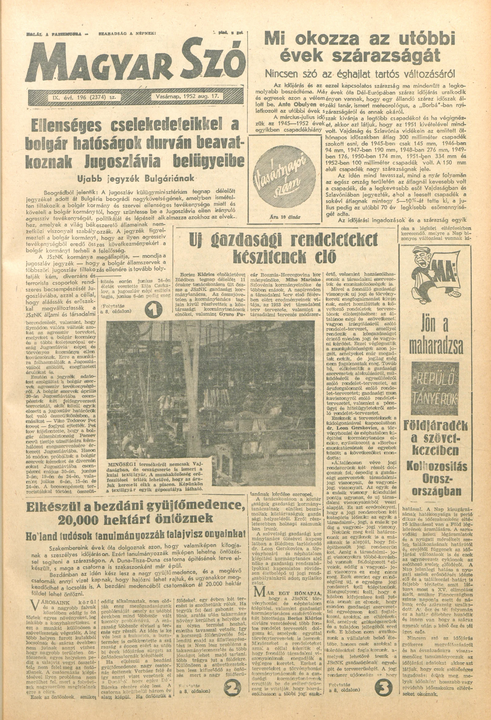 Magyar Szó, 9. évf. 1952. augusztus 17. 196. sz. 1–12. oldal