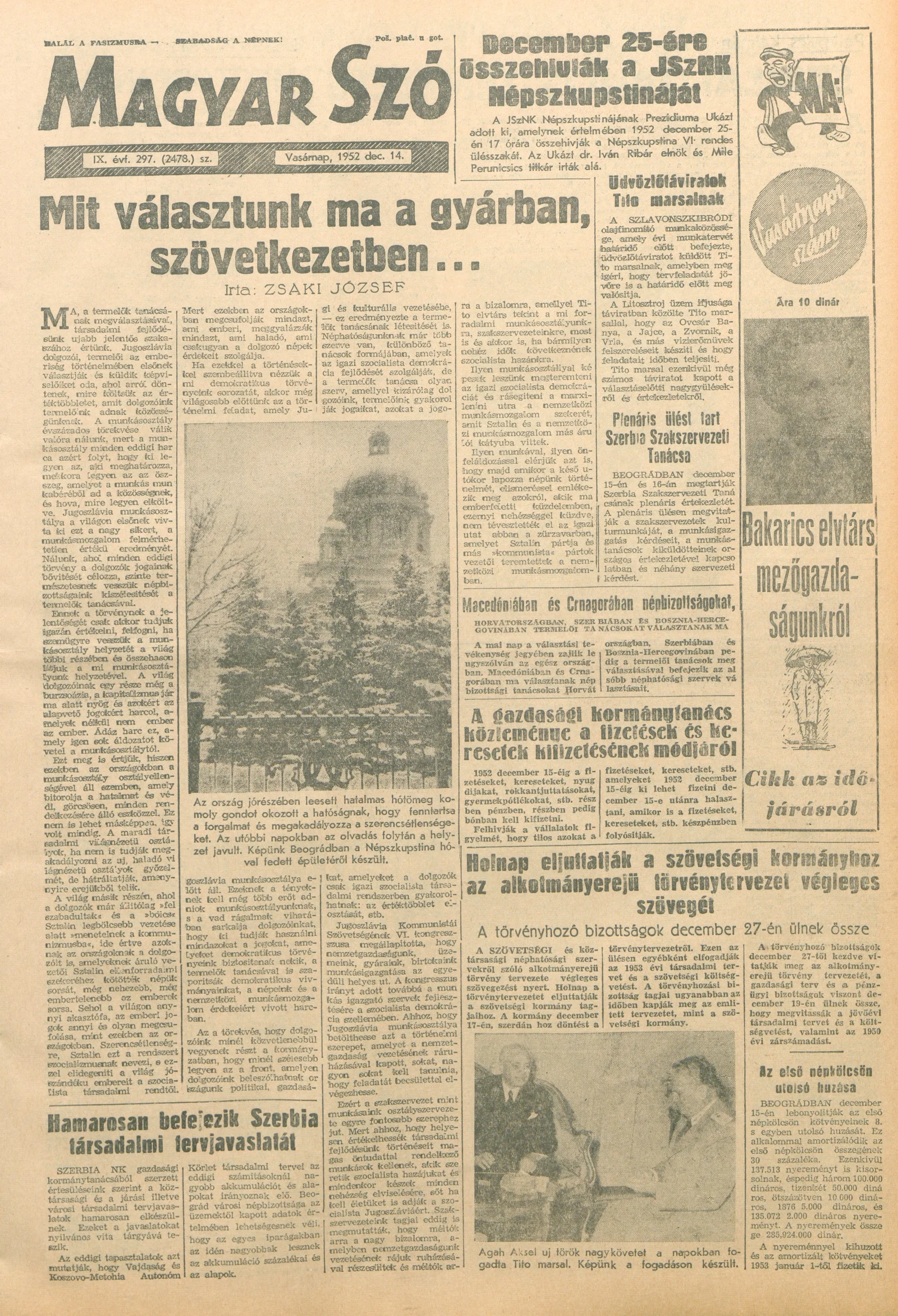 Magyar Szó, 9. évf. 1952. december 14. 297. sz. 1–6. oldal