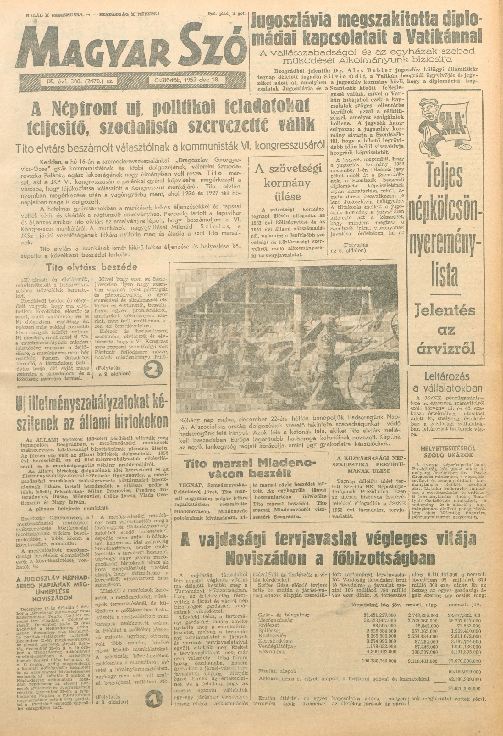 Magyar Szó, 9. évf. 1952. december 18. 300. sz. 1–6. oldal