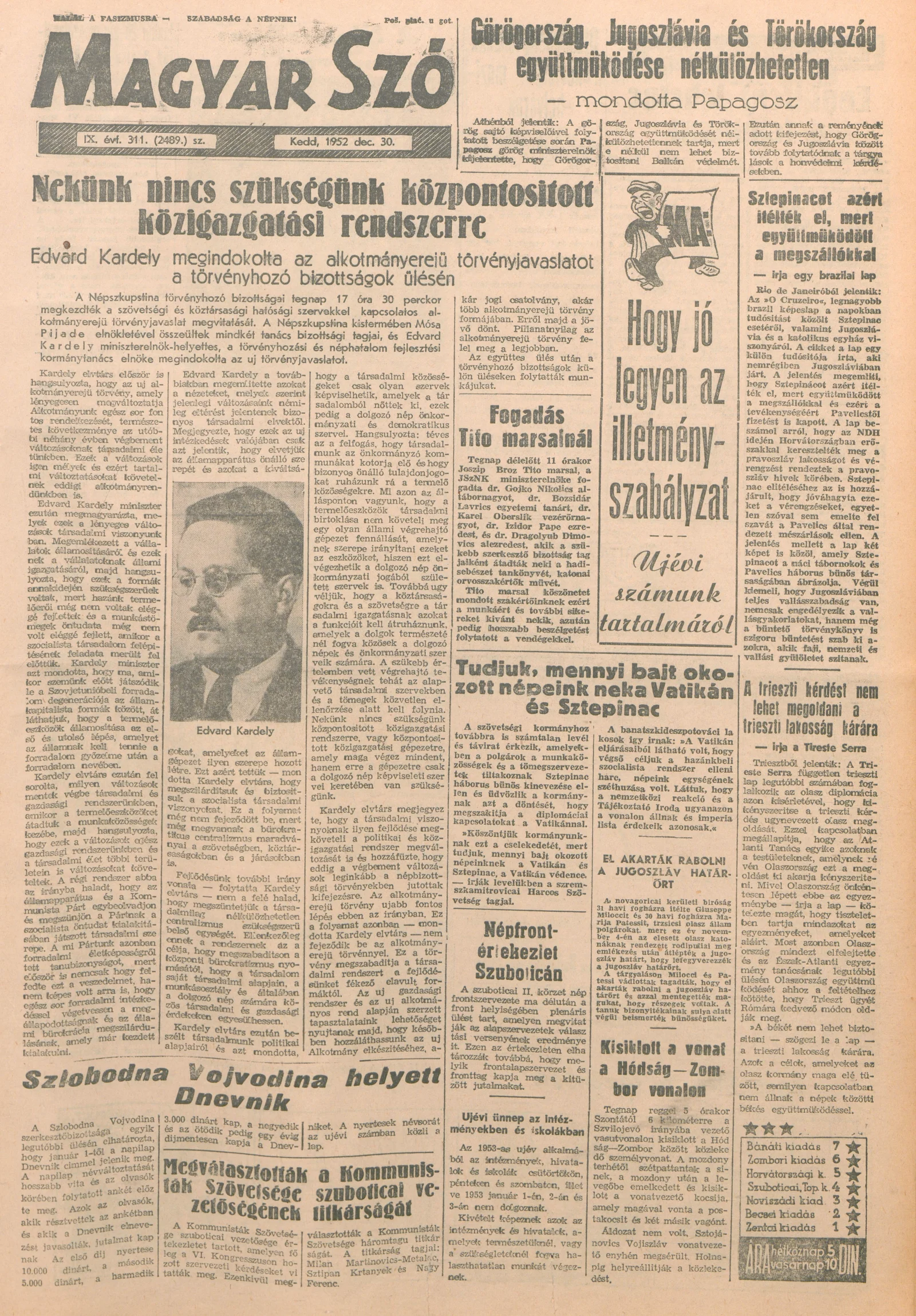 Magyar Szó, 9. évf. 1952. december 30. 311. sz. 1–10. oldal