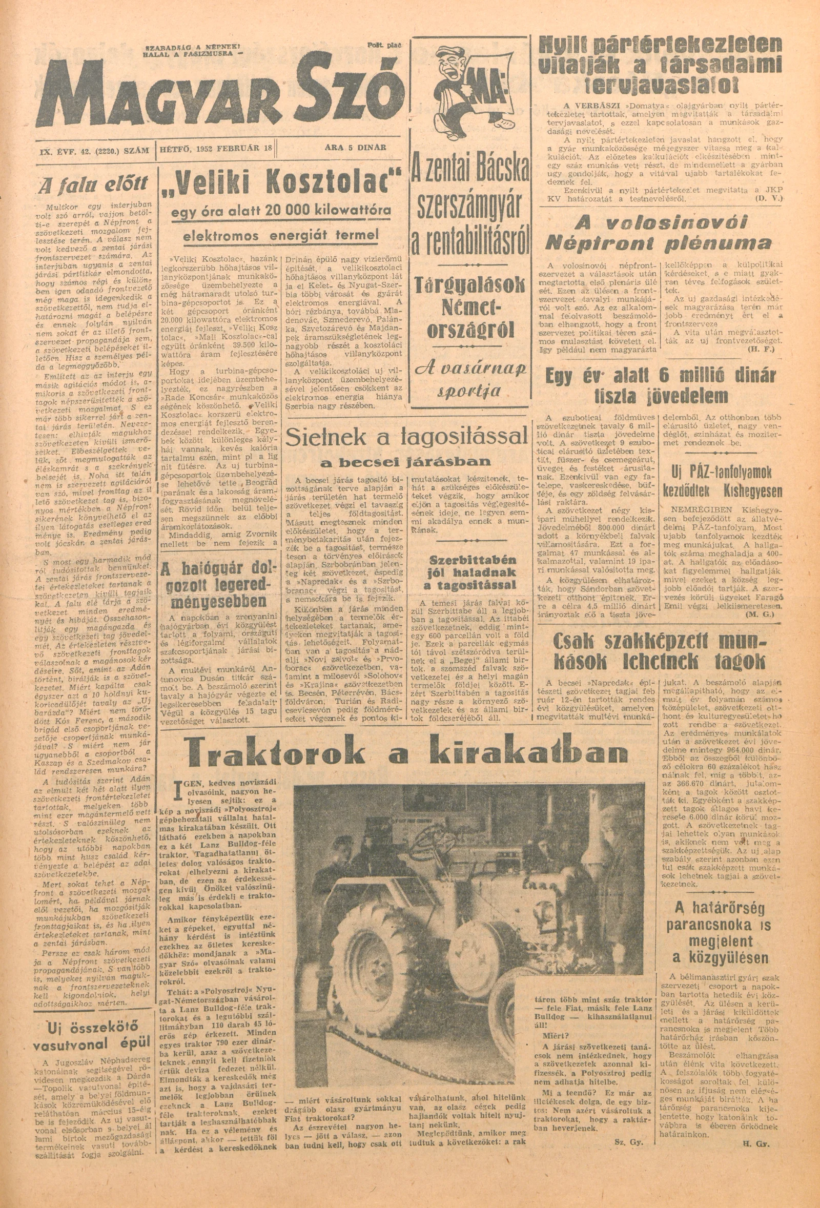 Magyar Szó, 9. évf. 1952. február 18. 42. sz. 1–4. oldal