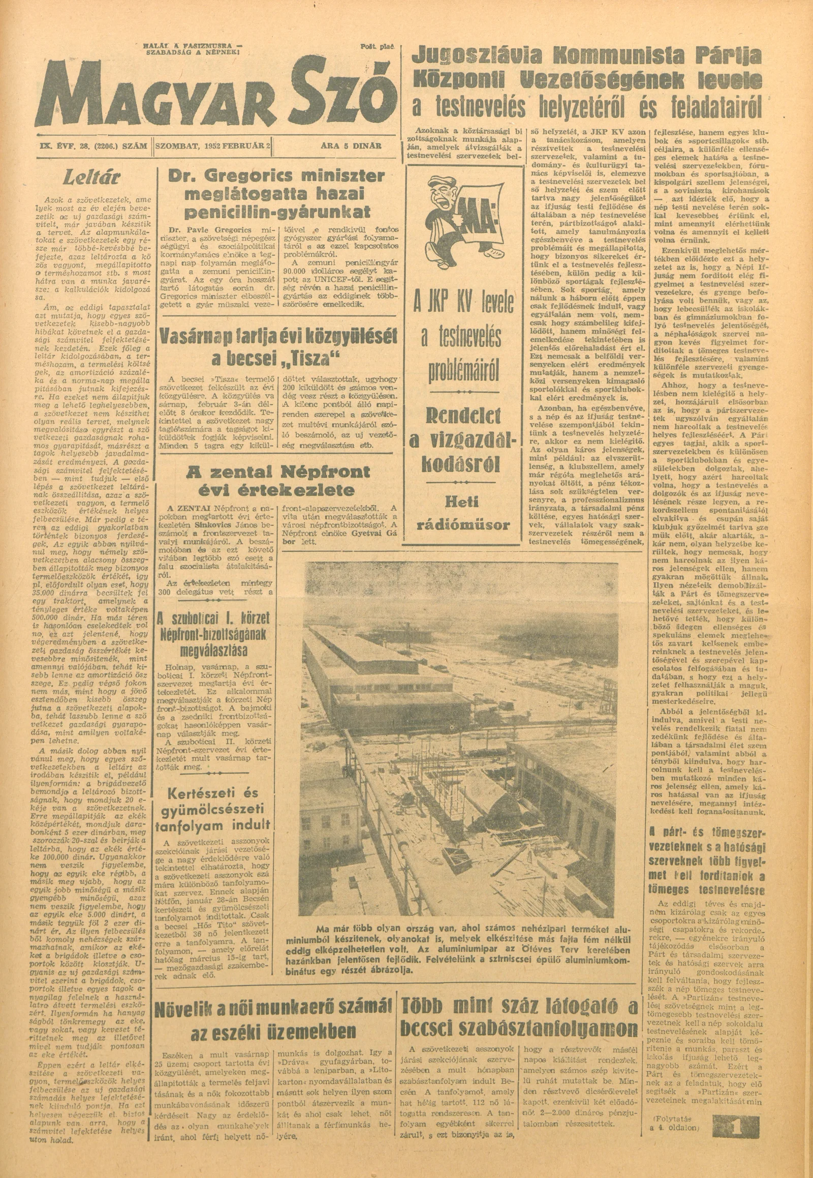 Magyar Szó, 9. évf. 1952. február 2. 28. sz. 1–6. oldal