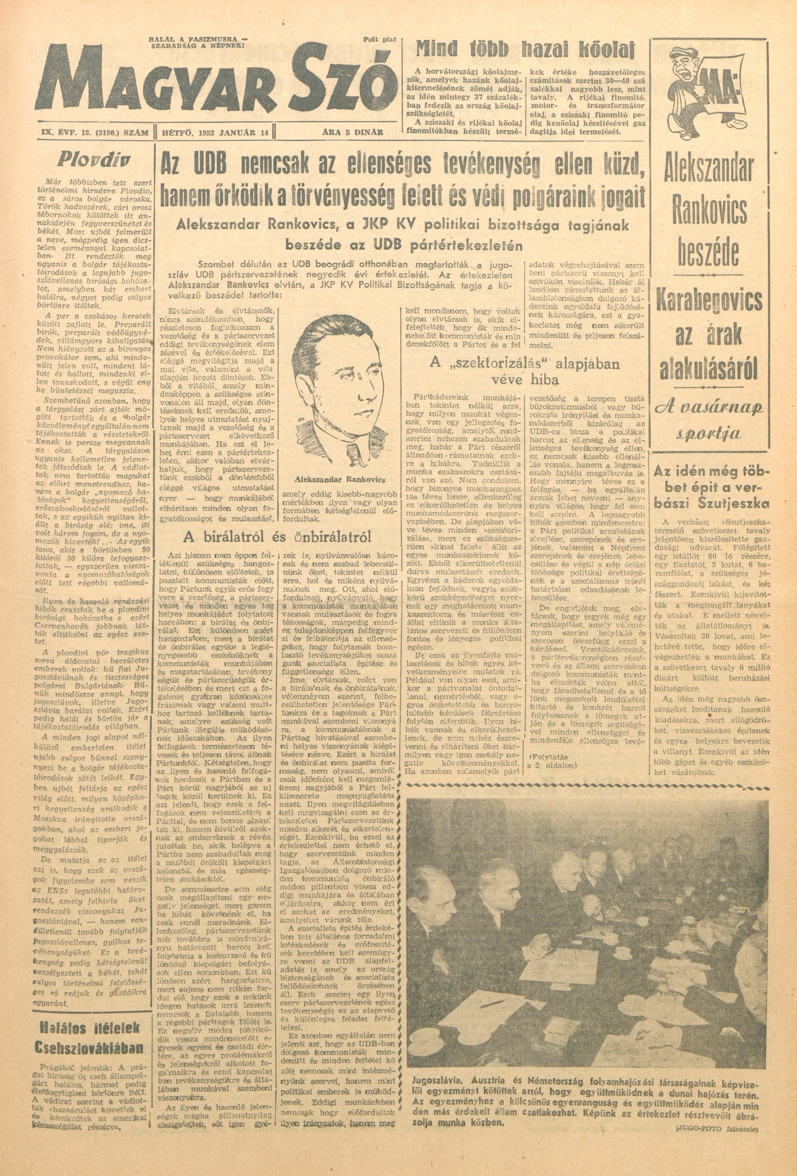 Magyar Szó, 9. évf. 1952. január 14. 12. sz. 1–4. oldal