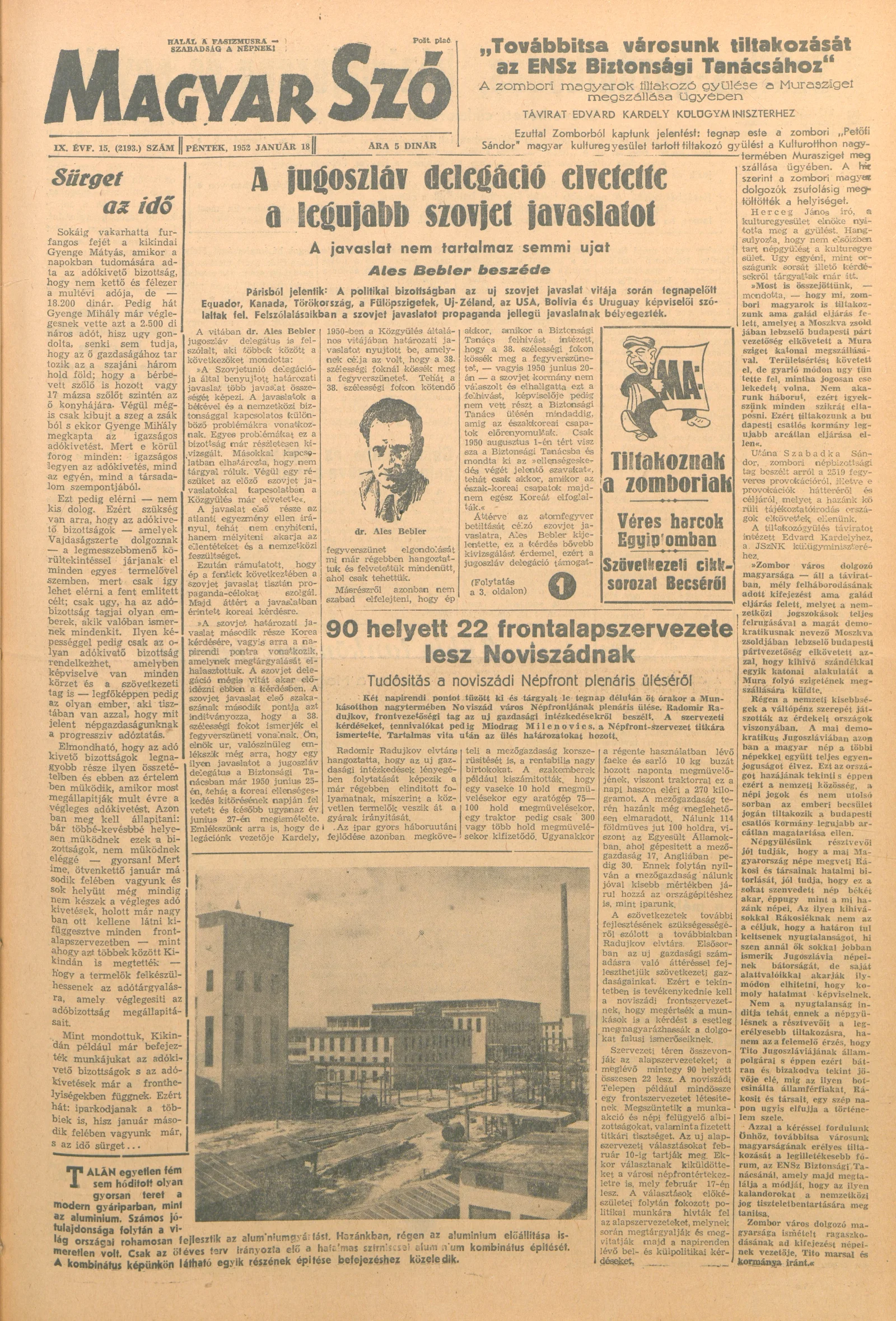 Magyar Szó, 9. évf. 1952. január 18. 15. sz. 1–4. oldal