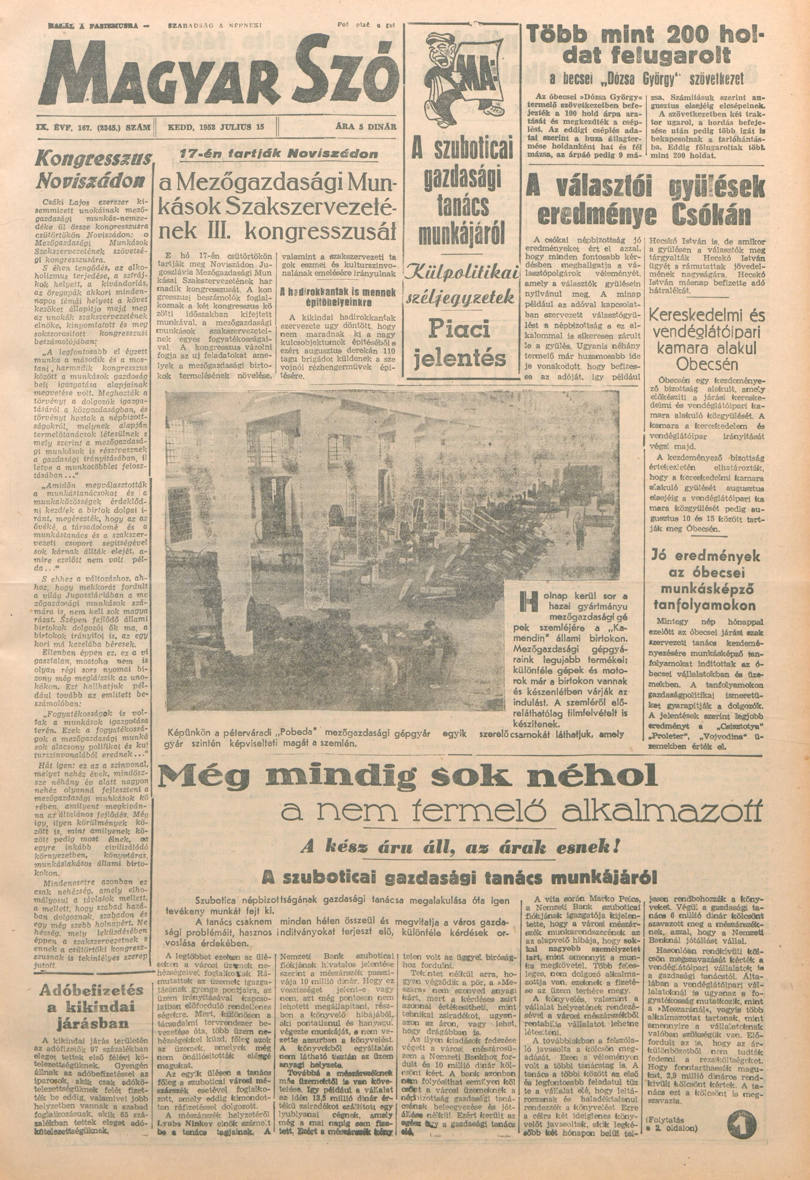 Magyar Szó, 9. évf. 1952. július 15. 167. sz. 1–6. oldal