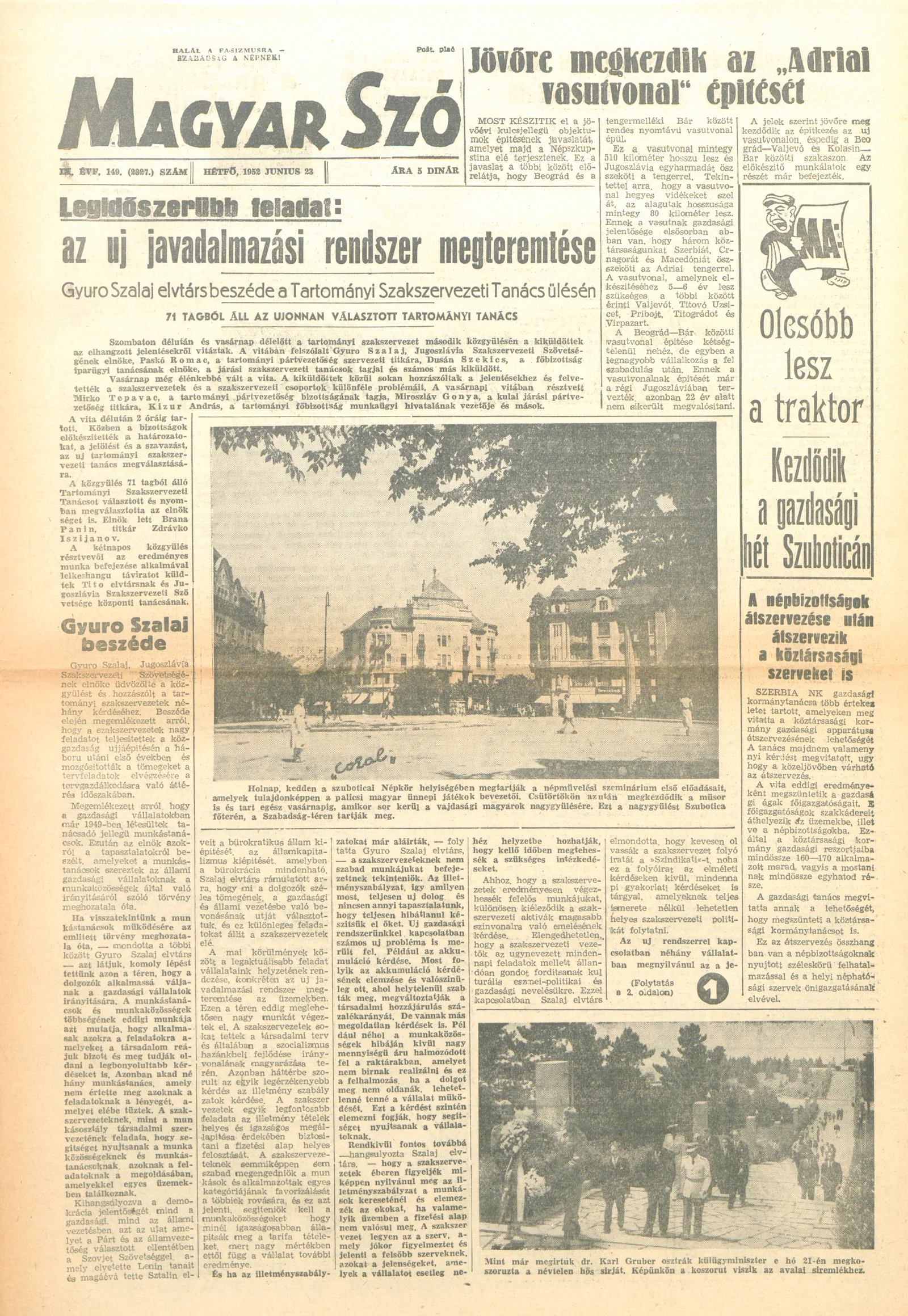 Magyar Szó, 9. évf. 1952. június 23. 149. sz. 1–4. oldal