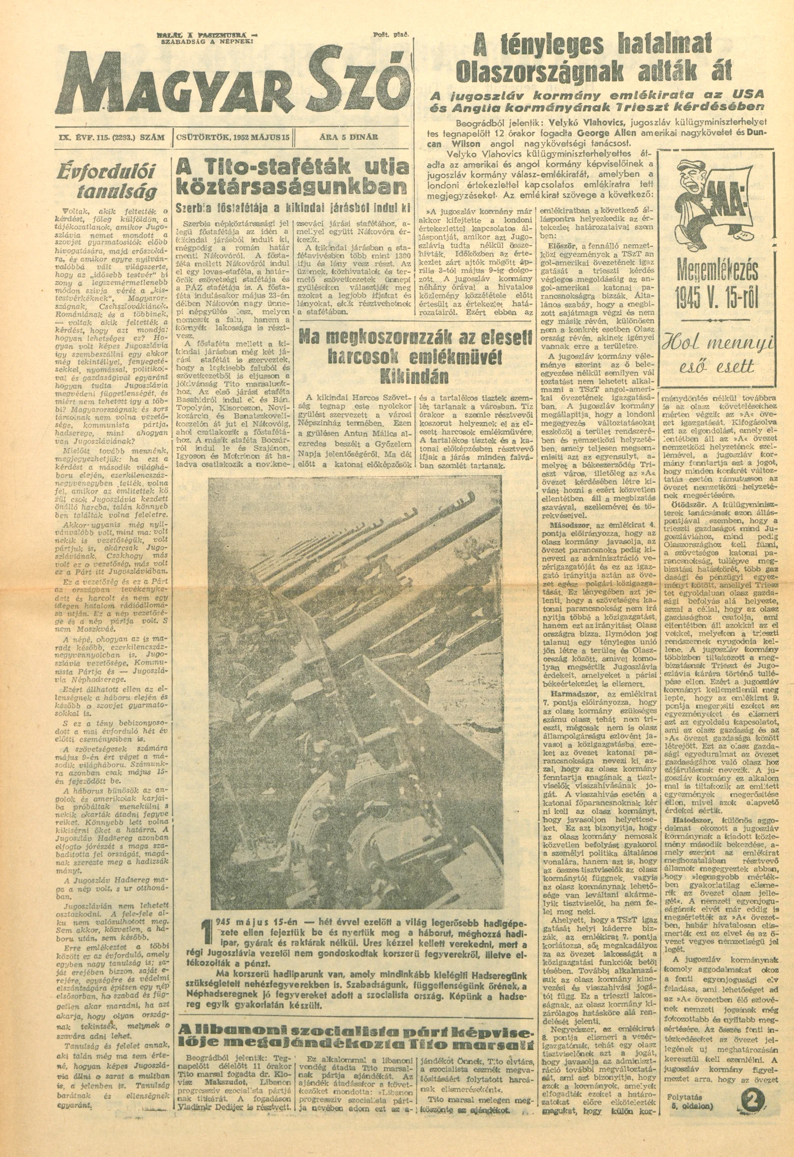 Magyar Szó, 9. évf. 1952. május 15. 84. sz. 1–8. oldal