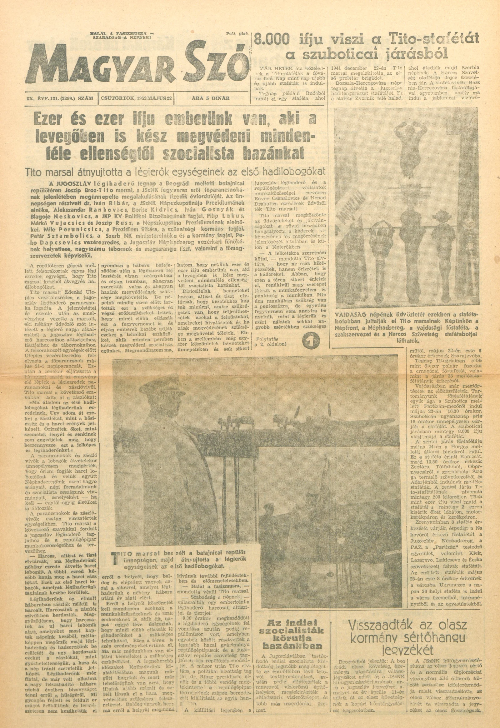 Magyar Szó, 9. évf. 1952. május 22. 121. sz. 1–6. oldal