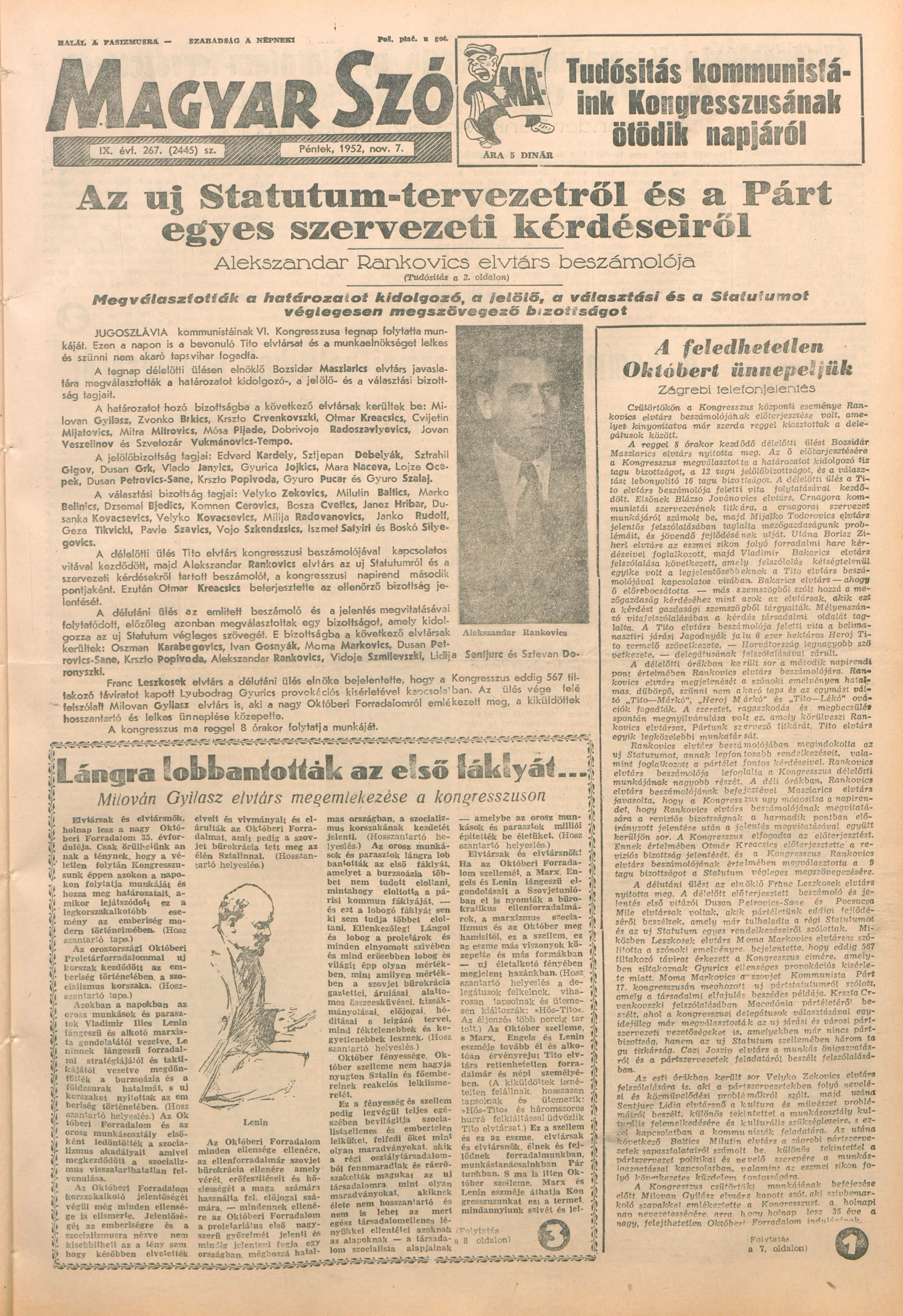 Magyar Szó, 9. évf. 1952. november 7. 267. sz. 1–8. oldal